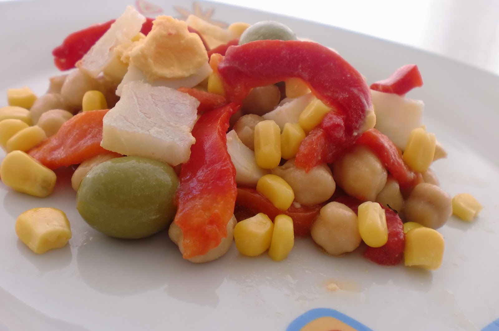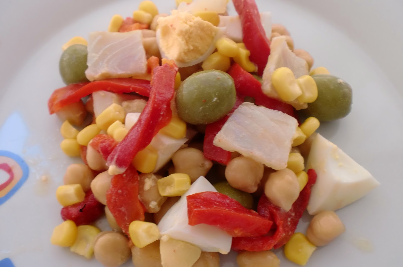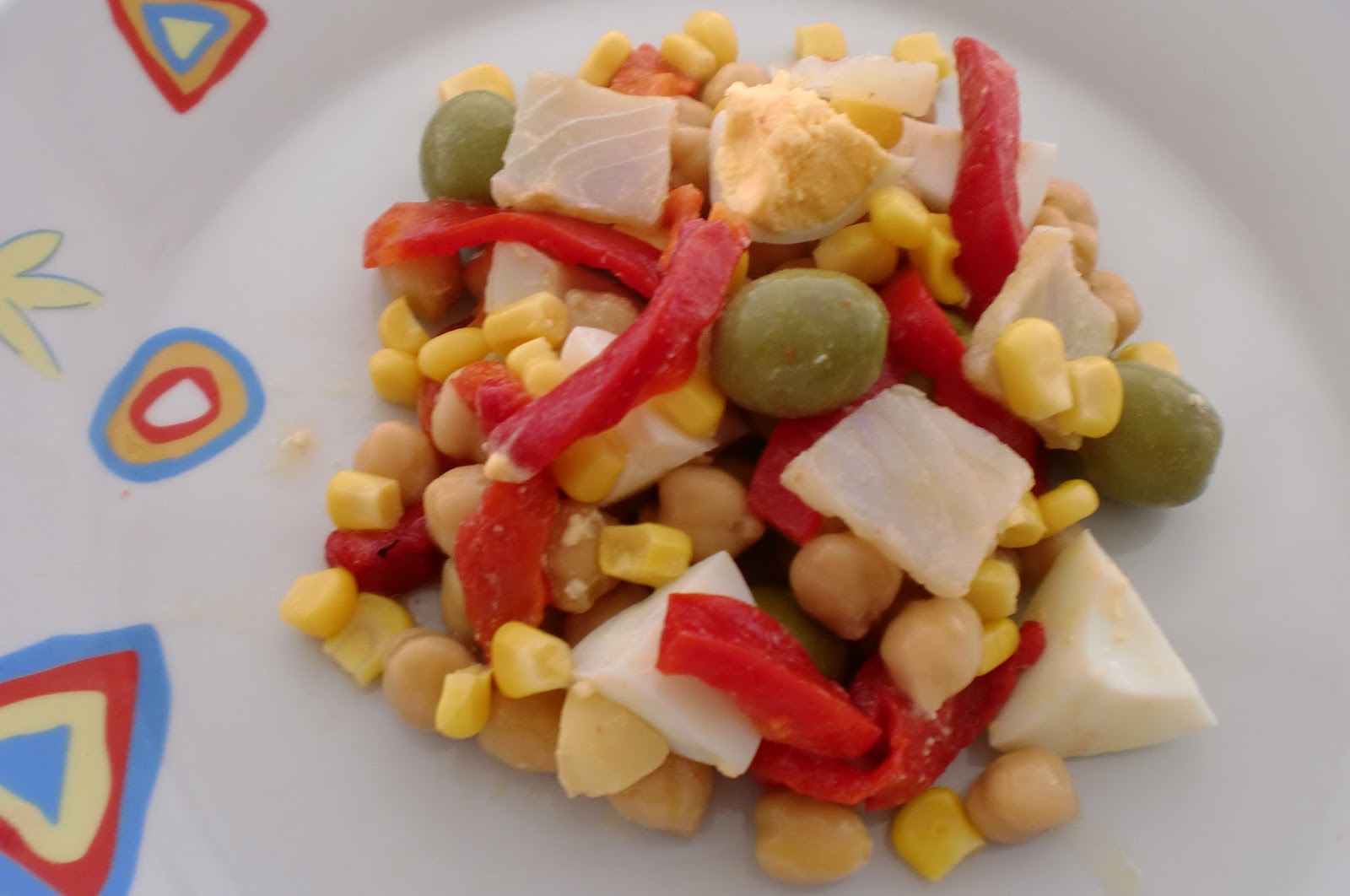 LISTA NUESTRA ENSALADA DE GARBANZOS, BACALAO Y PIMIENTOS.