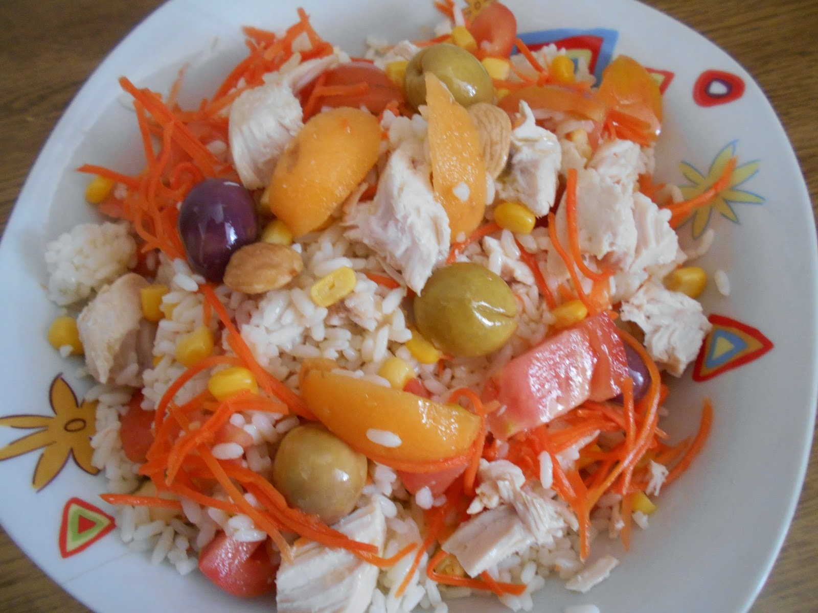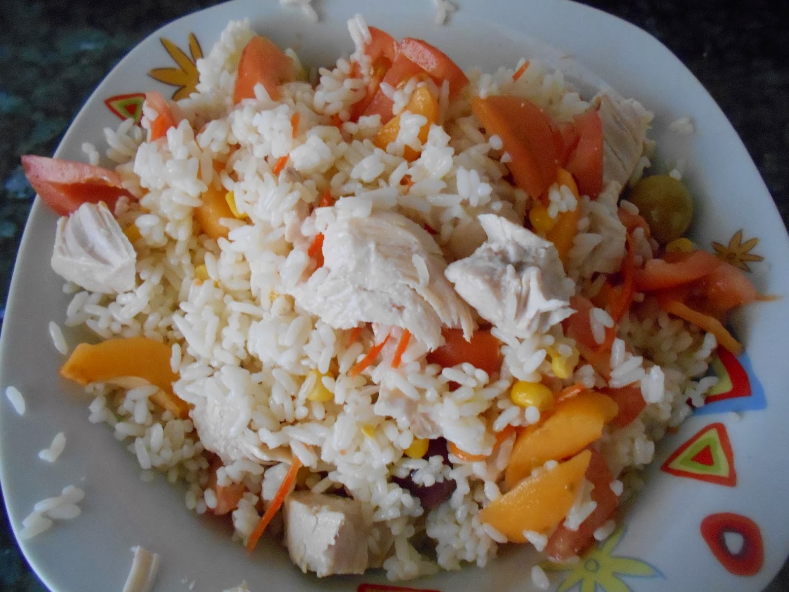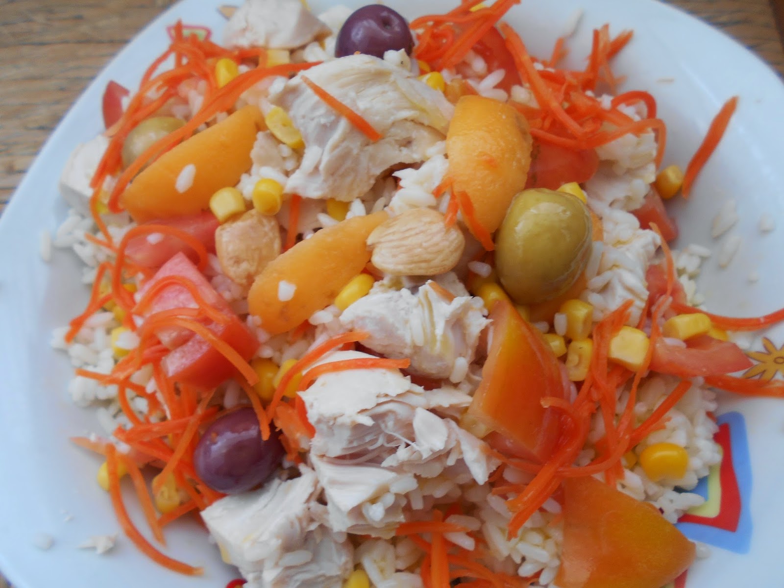 Ya tenemos una completa ensalada de arroz con pollo y nisperos que os va a alucinar!