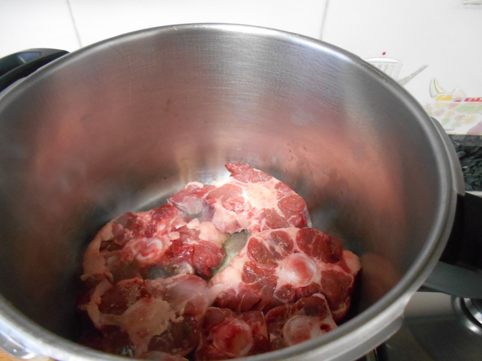Empezamos dorando en la olla la carne con un poco de aceite.