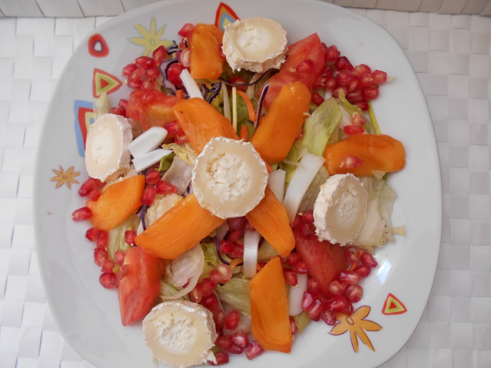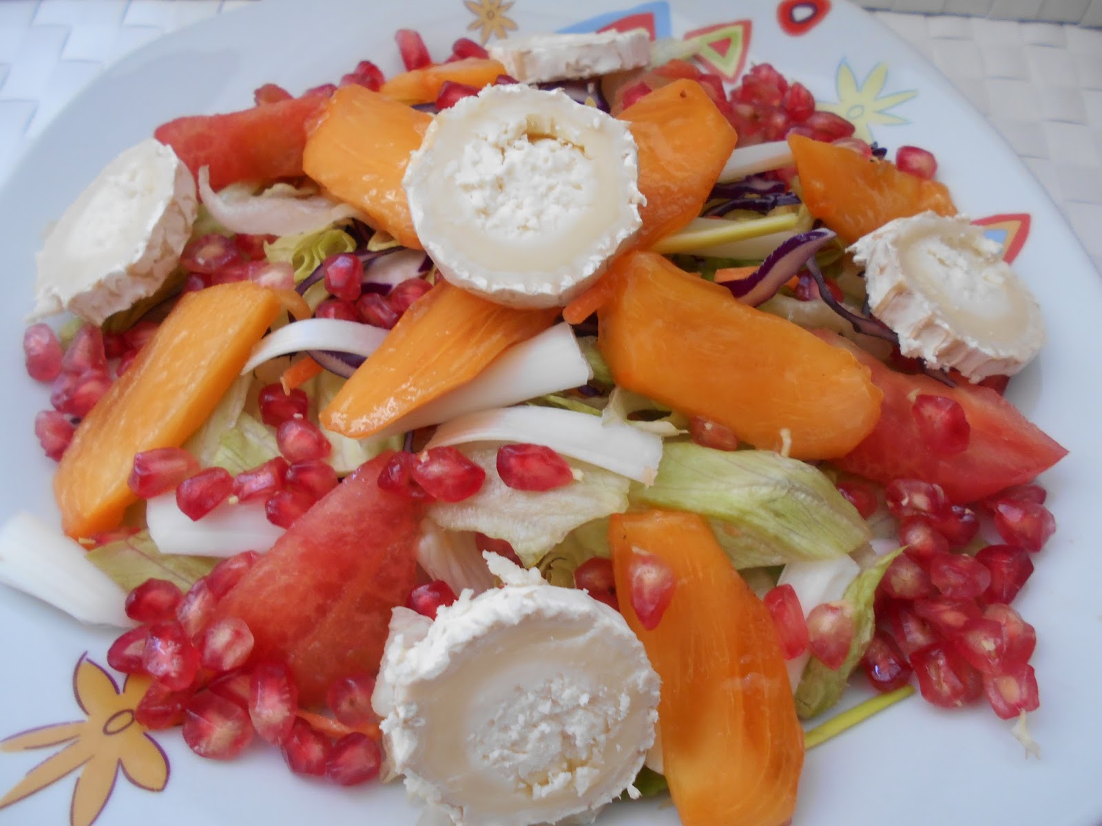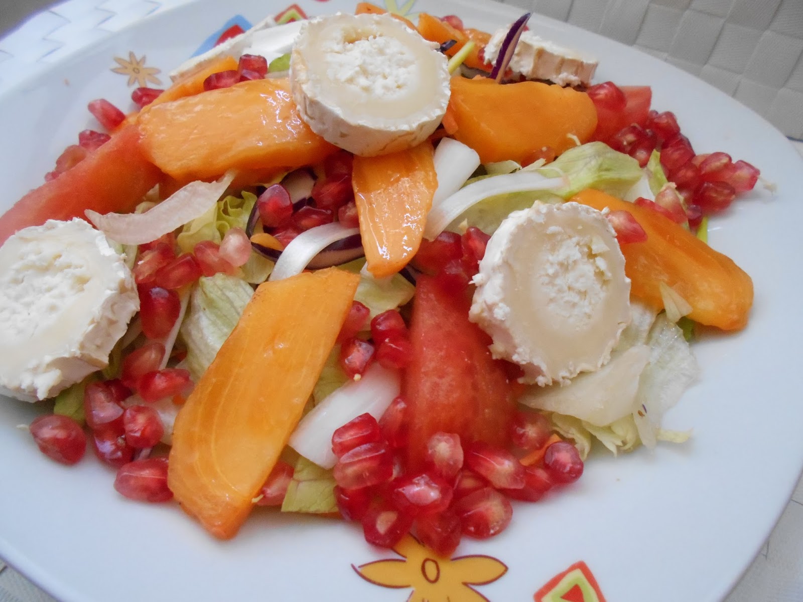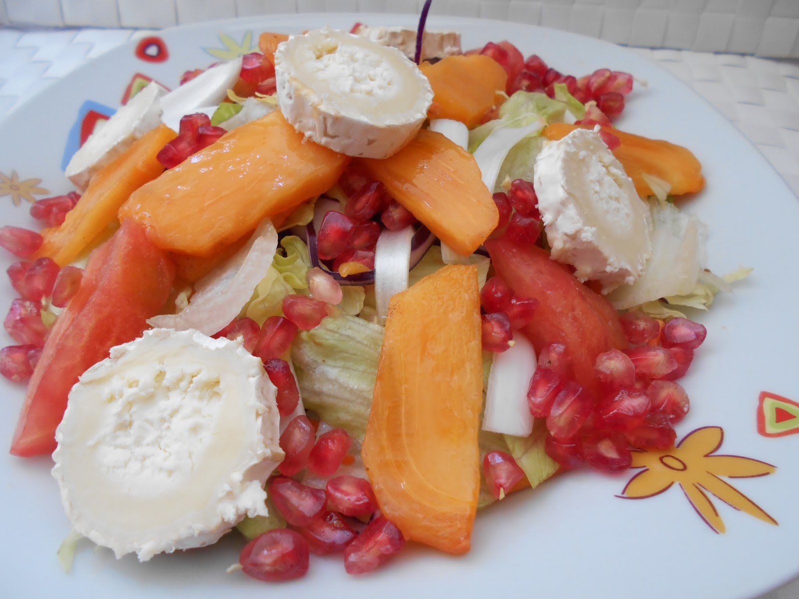 Os comparto una de las ensaladas de temporada que más me gustan, la ensalada de otoño. Direis ¿y que la hace de otoño?… Pues 2 ingredientes fundamentales el kaki  (o caqui) y la granada 2 frutas riquísimas de esta estación