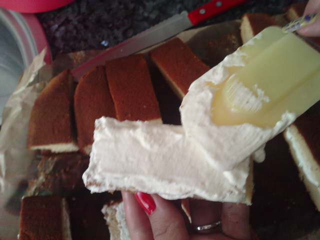 Rellenamos los bizcochos con nata, no echeis demasiada
