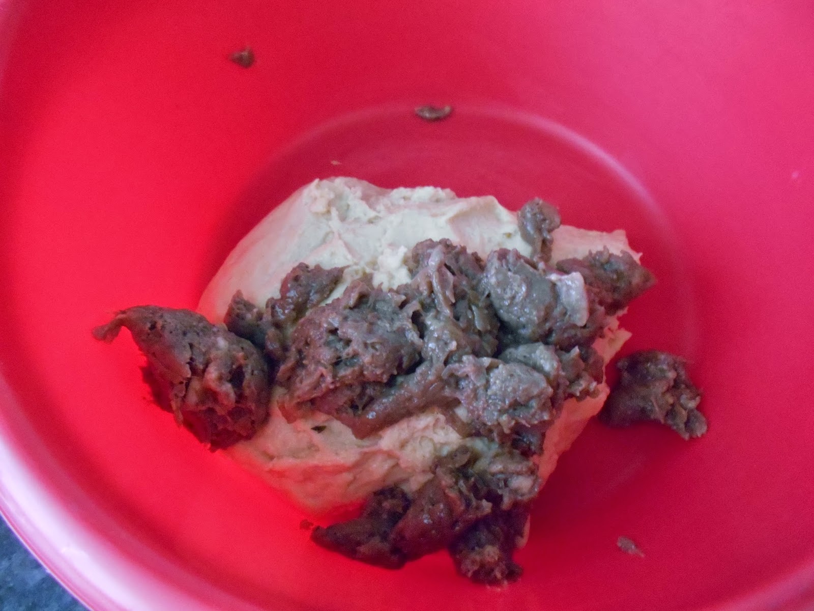 Agregamos las morcillas tal cual sin cocer, hervir ni nada. Y las mezclamos con la masa.