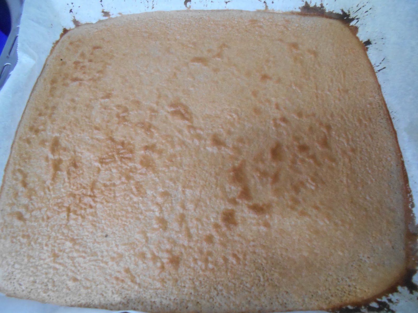 Enrollamos con cuidado y cortamos el bizcocho sobrante.