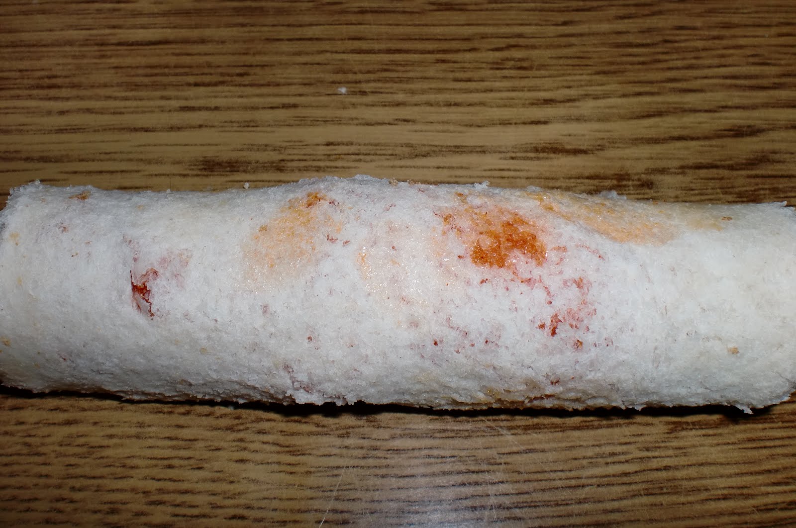 Aplanamos la rebanada con el rodillo. Extendemos el relleno.