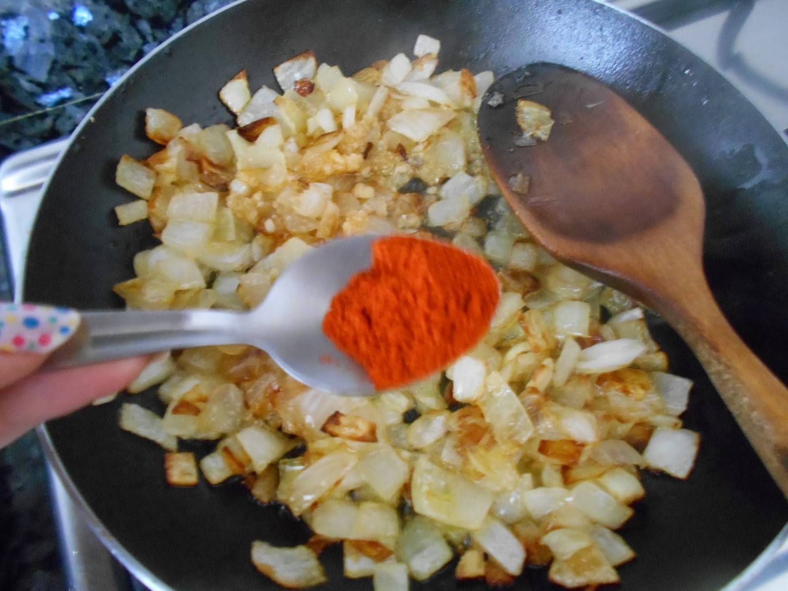 Empezaremos haciendo el sofrito. En una sarten ponemos un poco de aceite y sofreimos la cebolla picada.
