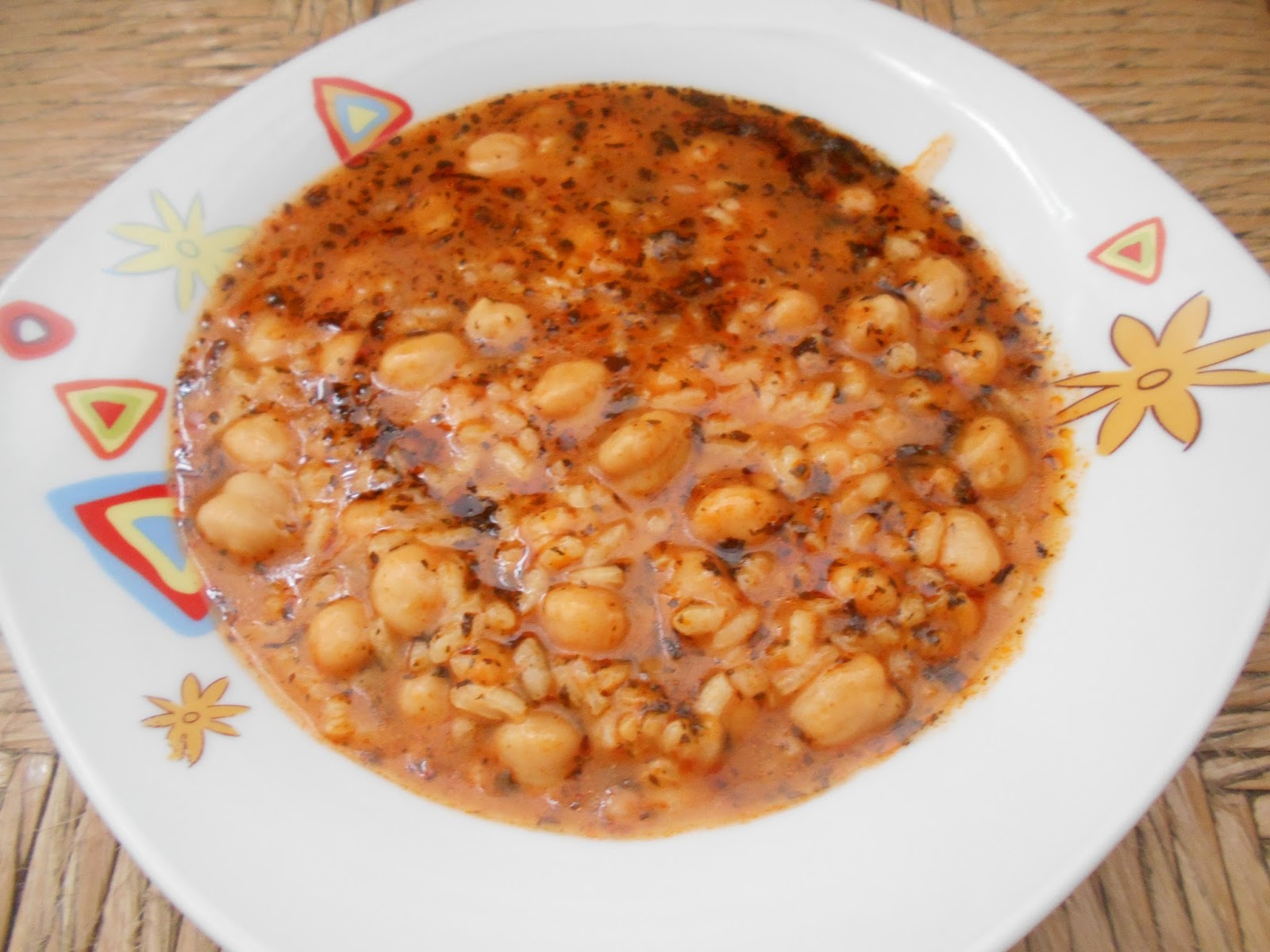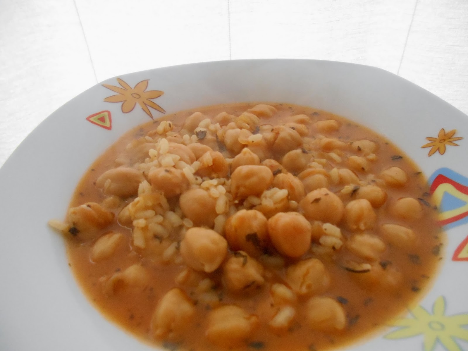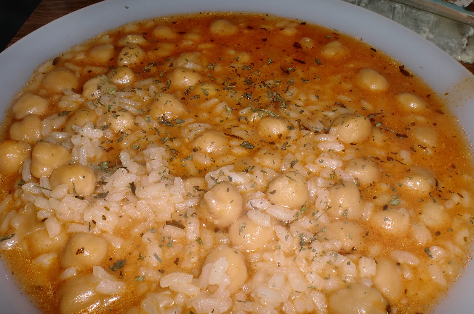 Aqui estoy de nuevo!! Os dejo la receta de un potaje de garbanzos con arroz que me encanta!! Es facil y muuuuuy economico!!