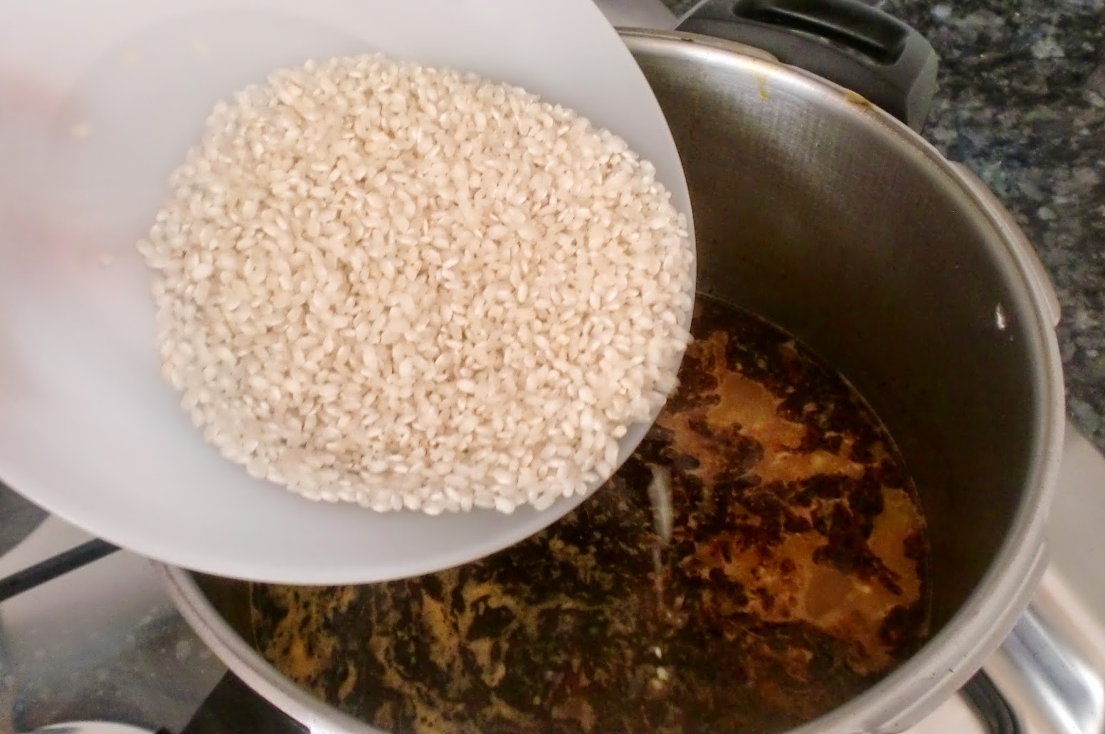 Pasado ese tiempo abrimos la olla y agregamos el arroz.