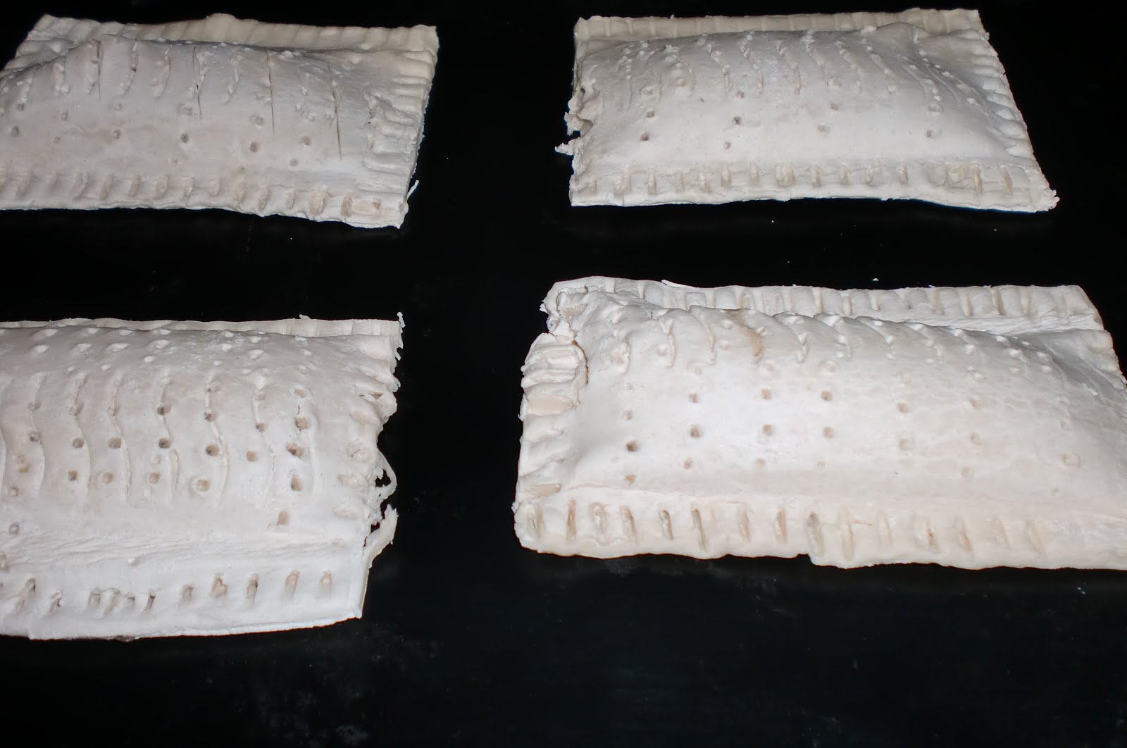 Echar un poco de la mezcla anterior en cada rectángulo y cerramos con otro rectangulo sellando bien los bordes.