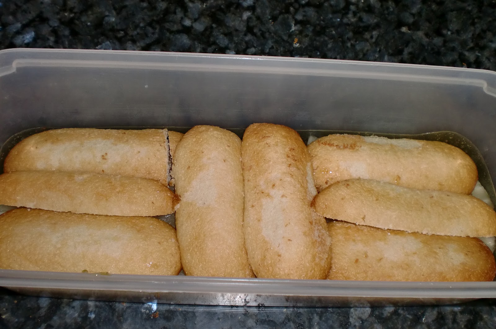 Ahora encima de los melocotones cubriremos con los bizcochos de soletilla. Debéis procurar que este todo el molde bien cubierto pues esos bizcochos serán la base de nuestro puding.