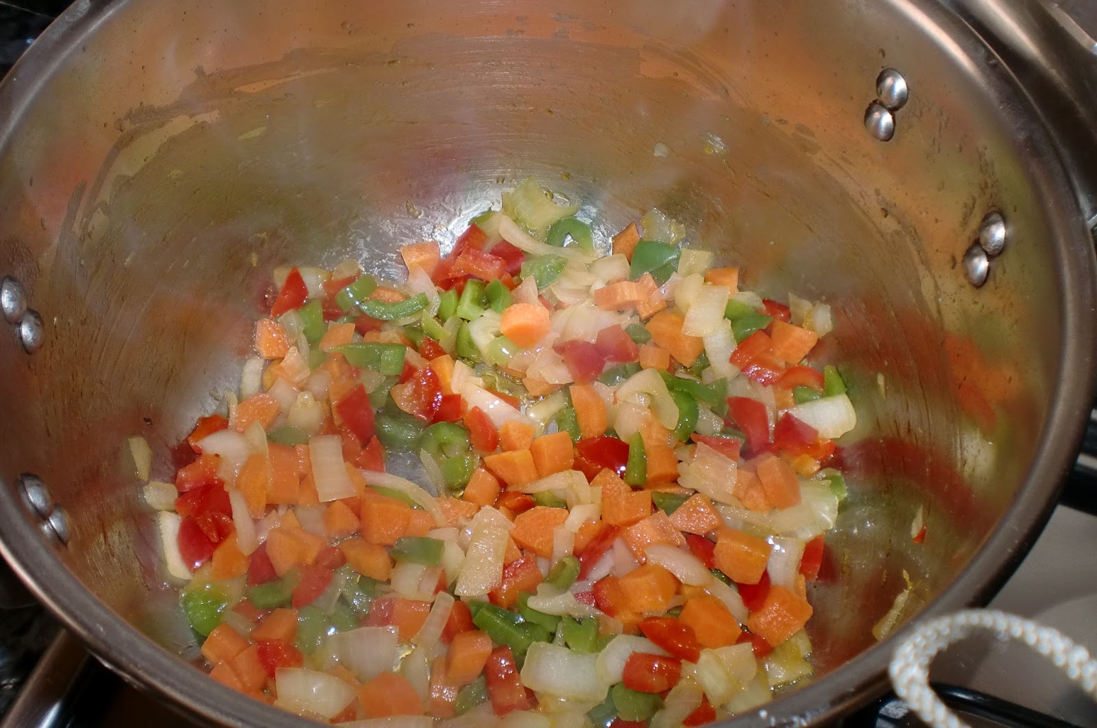 Cortamos las verduras en trozos pequeños, asi en la coccion se desharan un poco.