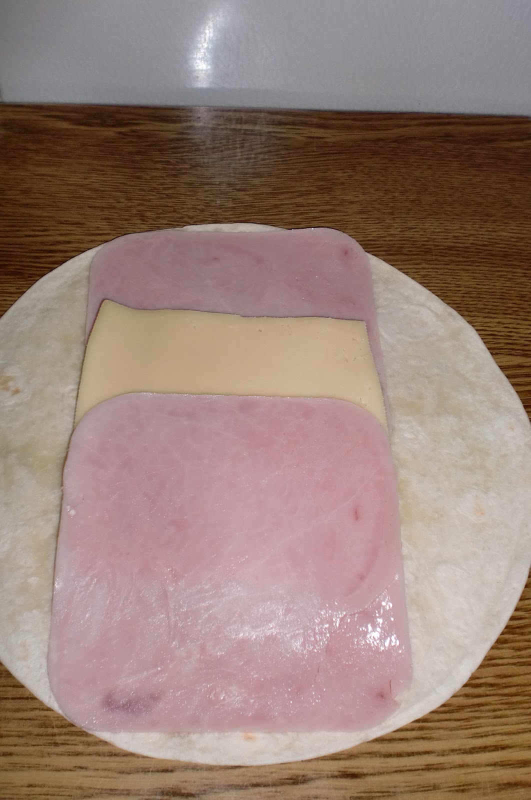 Es tan sencillo como disponer las lonchas de queso y jamon york en el centro de la tortilla