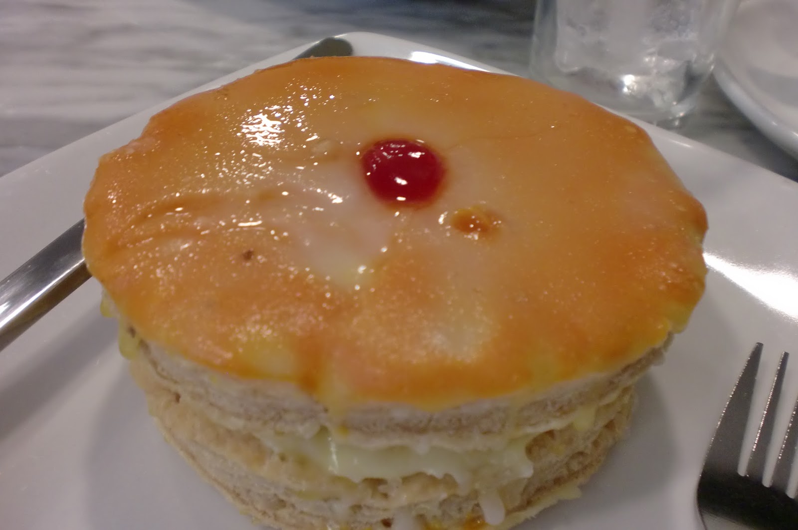 Untamos con la crema de yemas y disponemos en el centro de cada «torta» una guinda.