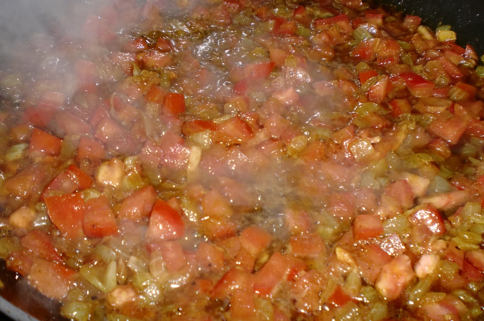 Añadimos los tomates picados y cocinamos unos 5 min.