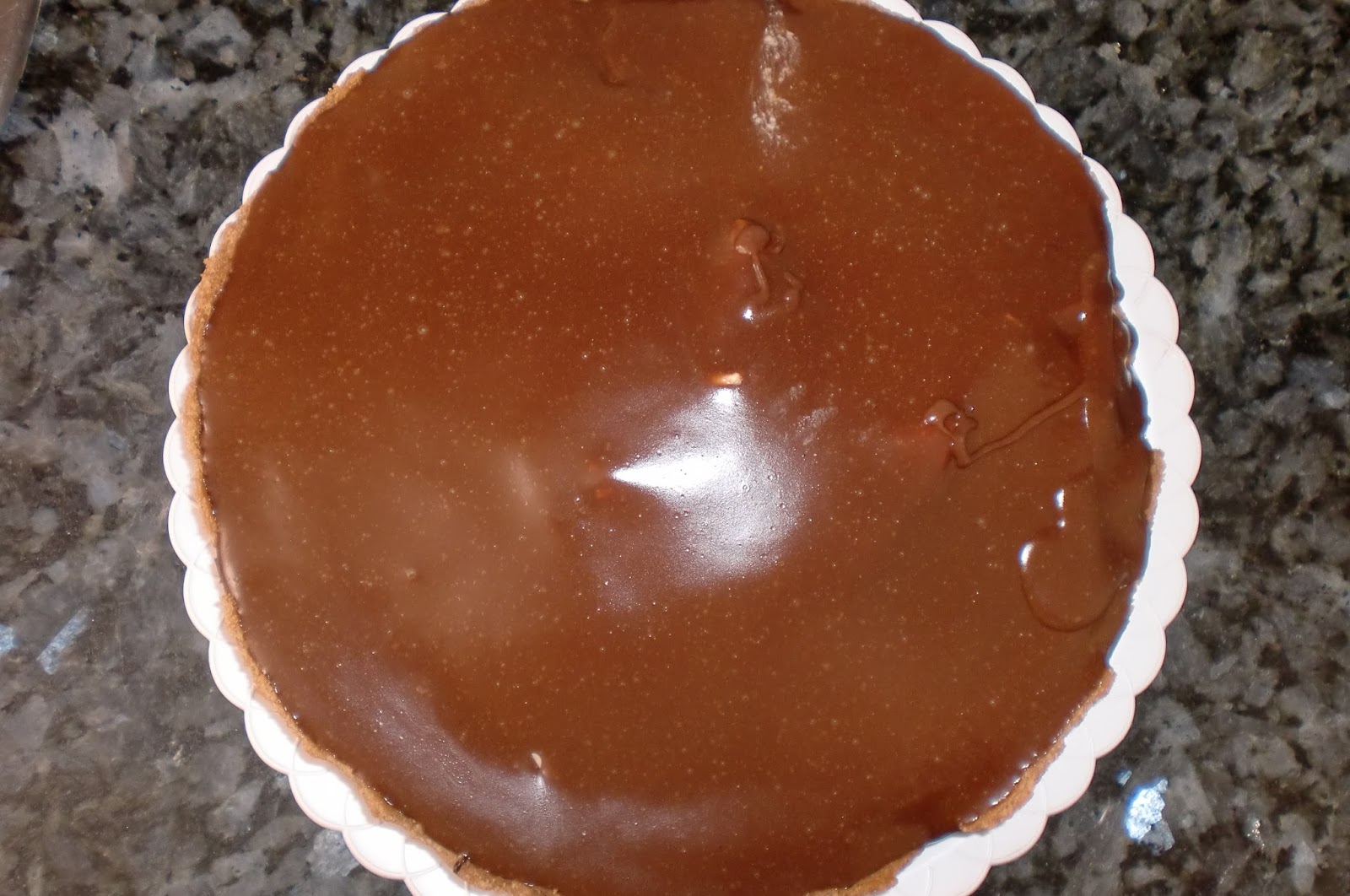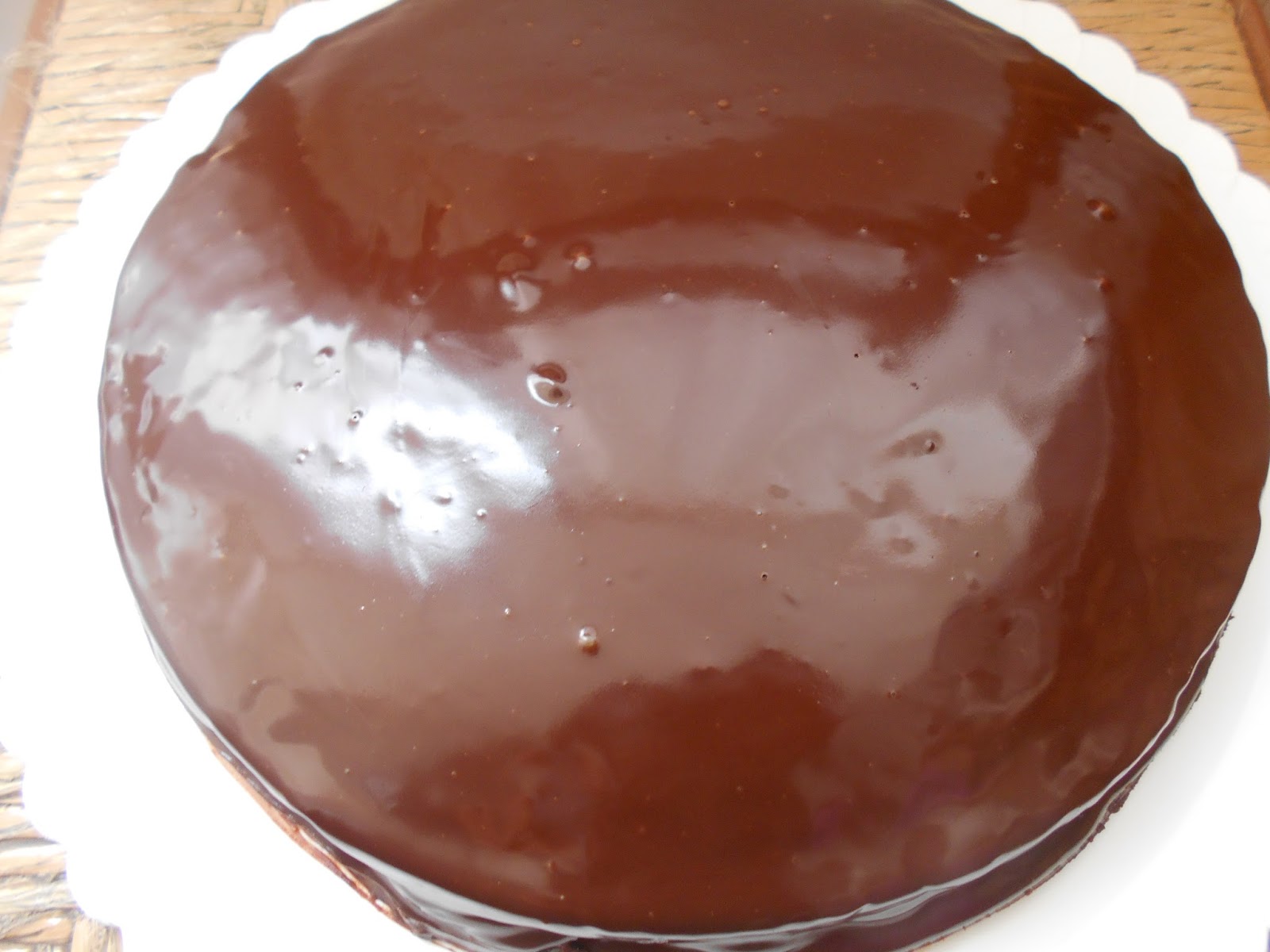 Cuando la moka este fria y bien asentada, vertemos con mucho mimo el glaseado por encima.