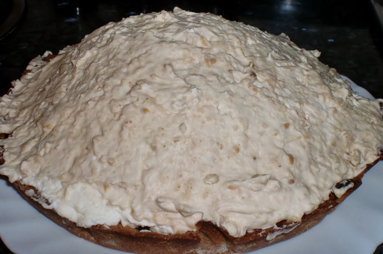 cuando la ganache este enfriada (importantiiiiiiiisimo, ojo, pues se bajaria la nata) ponemos la mousse de turron.