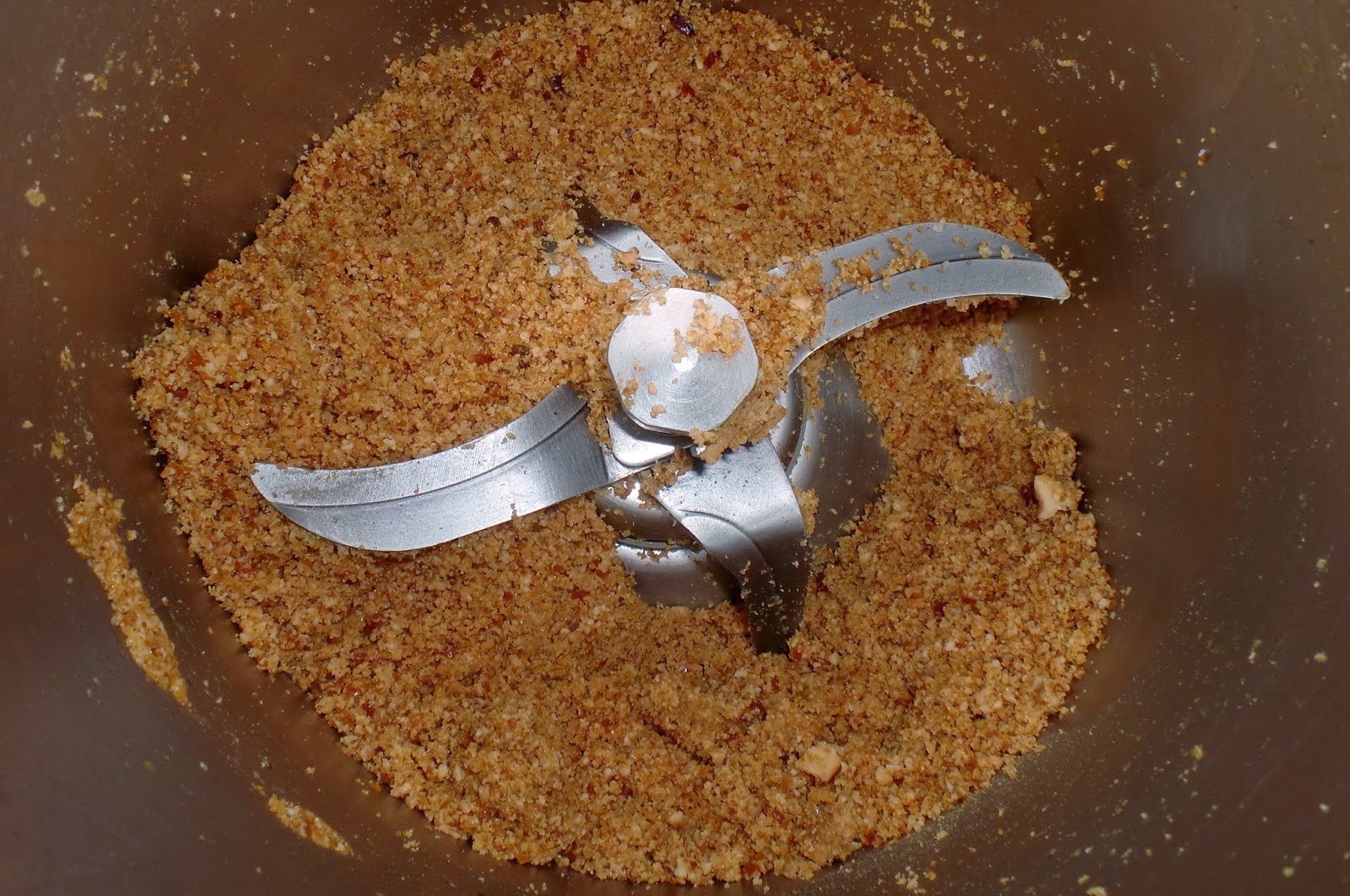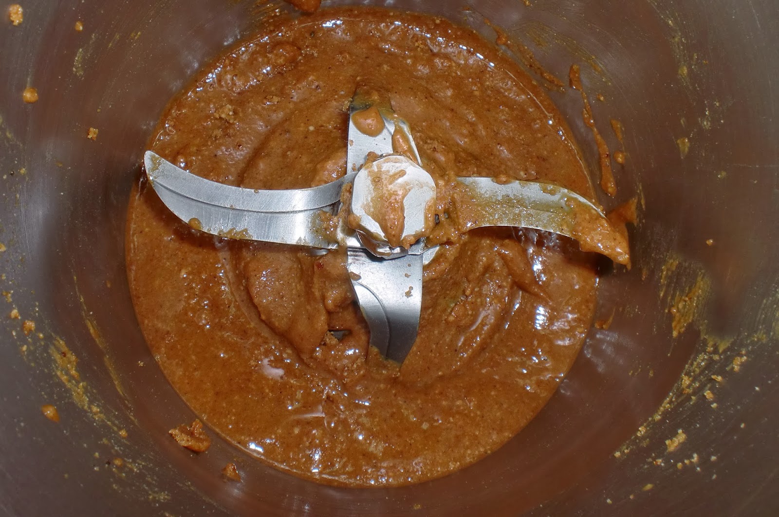 Tendreis que dejarlo triturando al menos 15-20 min. tened paciencia vereis que poco a poco va saliendo un capa de aceite propio de la avellana y se humedece la mezcla.