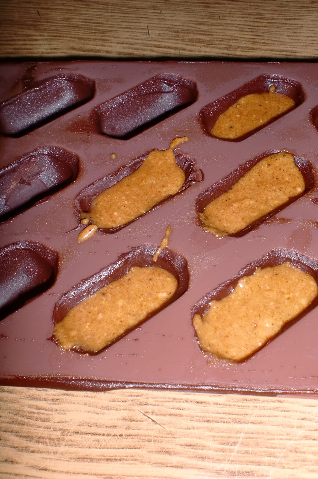 Echamos el chocolate en el molde que se llenen bien todos los huecos.