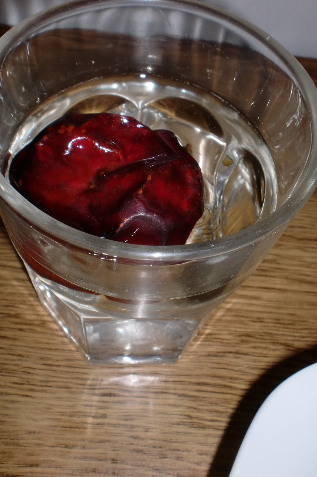 Ponemos en un vaso agua muy caliente y metemos la ñora a hidratar.