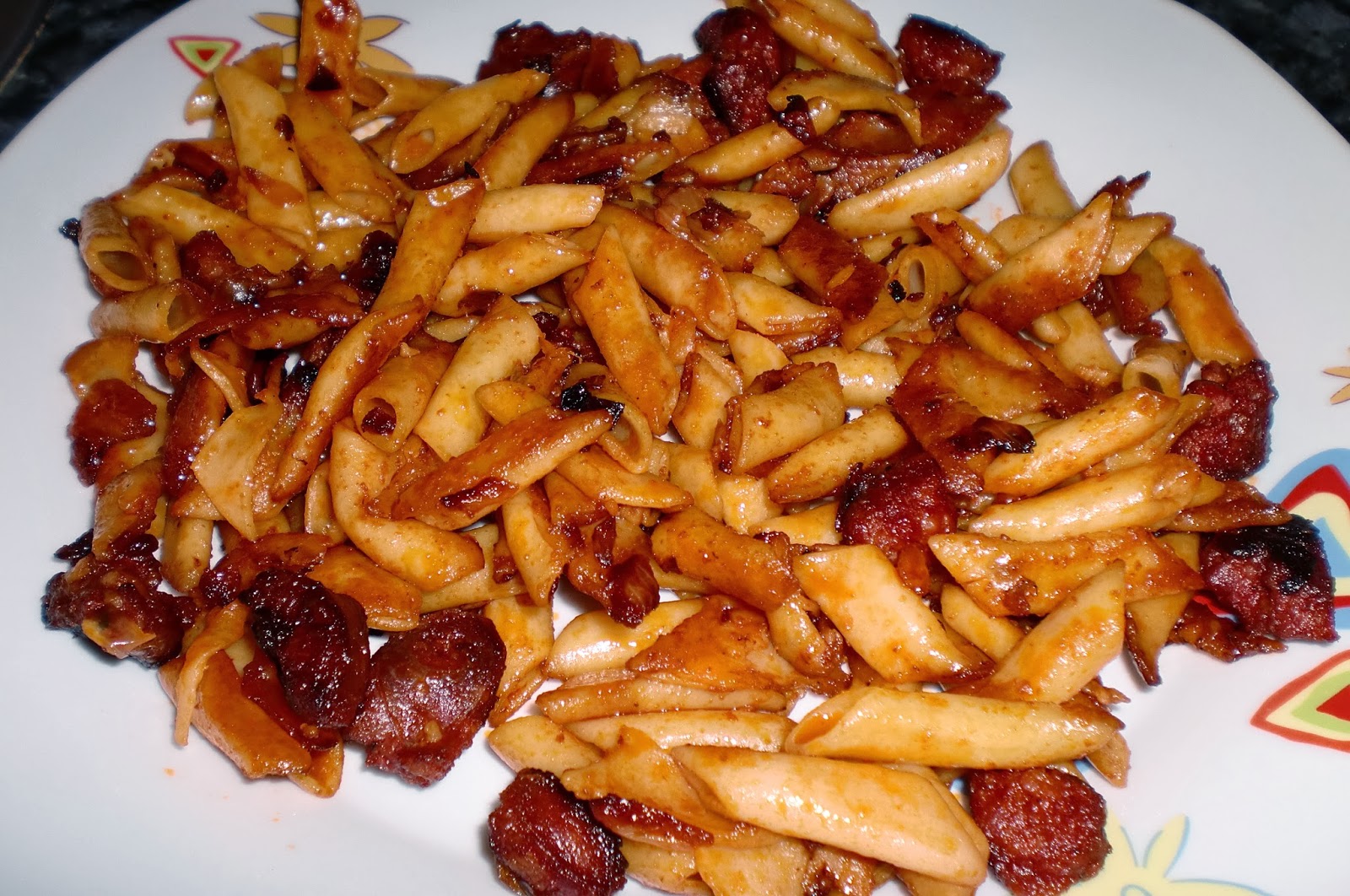Y asi de faciles son estos macarrones con chorizo, para los principiantes en la cocina… es una receta perfecta!