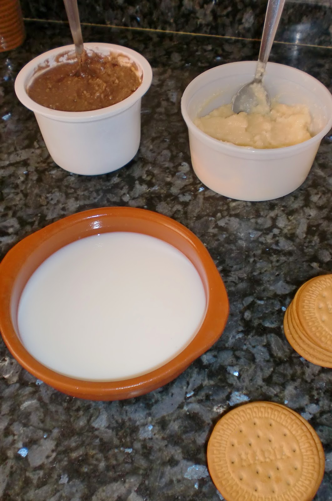 Mojamos las galletas en leche o cafe (al gusto). Unos segundos para que no esten demasiado blandas.