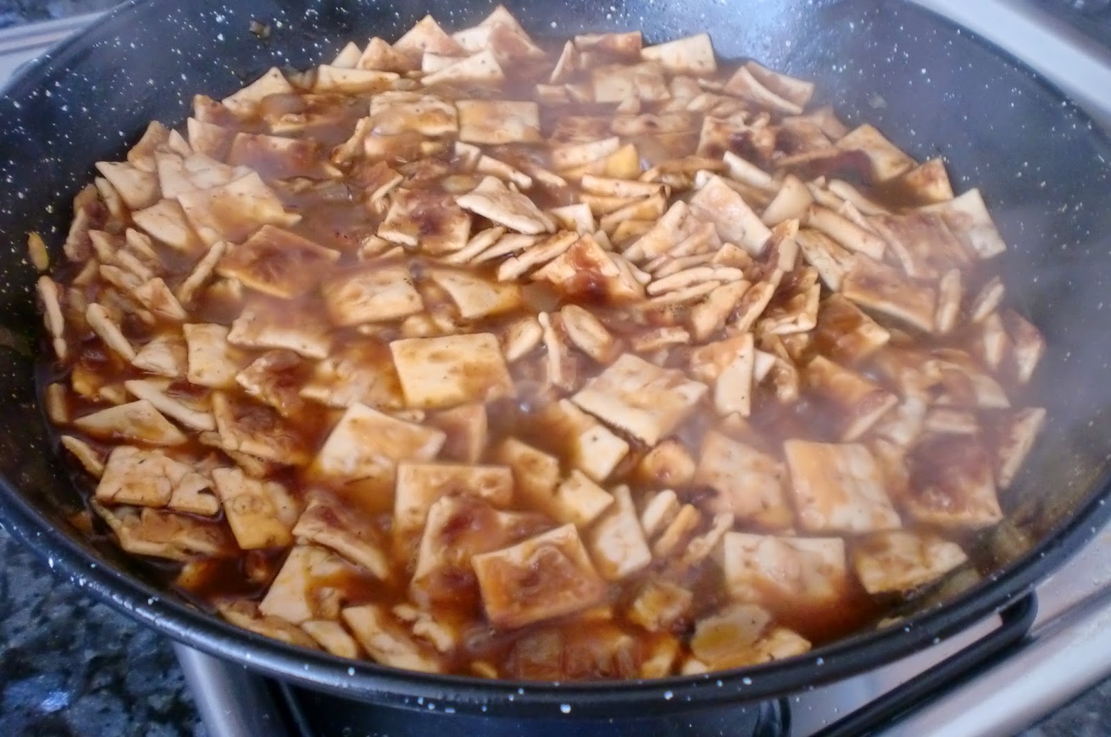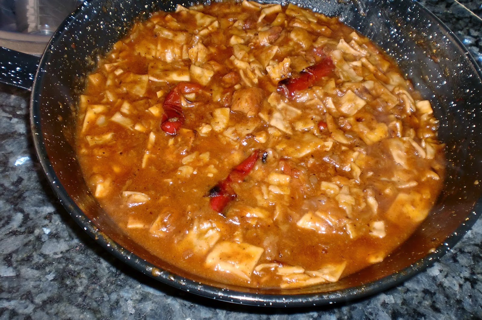 Entonces añadimos las tortas «espichadas» (cortadas en trozos con la mano) y las especias y, dejamos hervir unos 15-20min. mas.