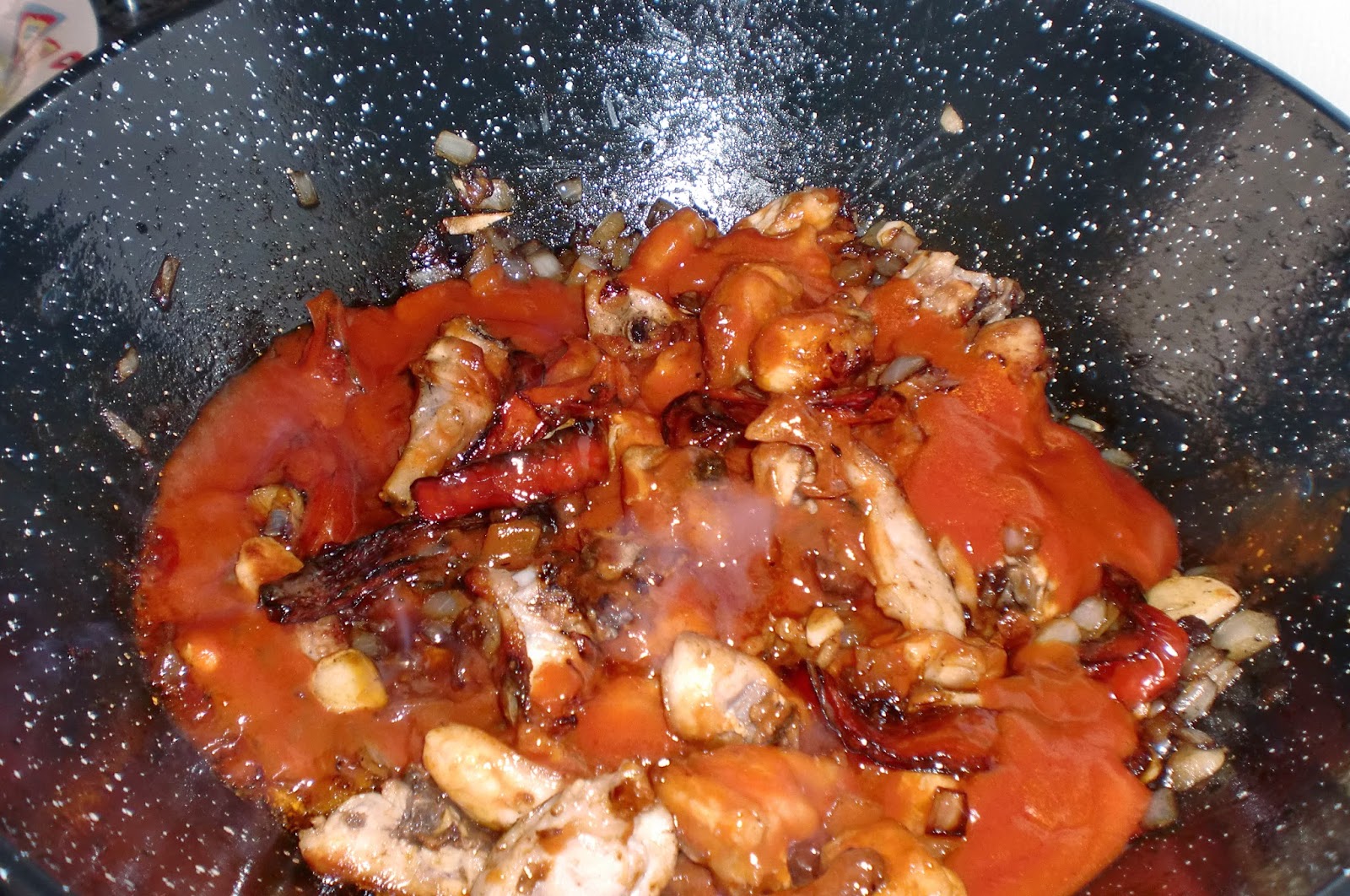 Cuando esten bien dorada se añade el tomate y se rehoga muy bien.