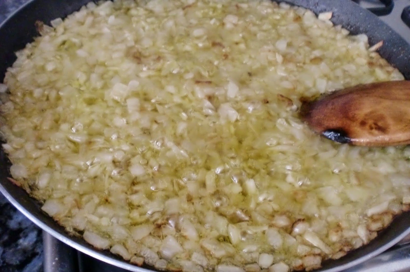 Picamos la cebolla y la ponemos a pochar en una sarten hasta que este bien transparente, yo la dejo a furgo minimo unas 4 horas o más