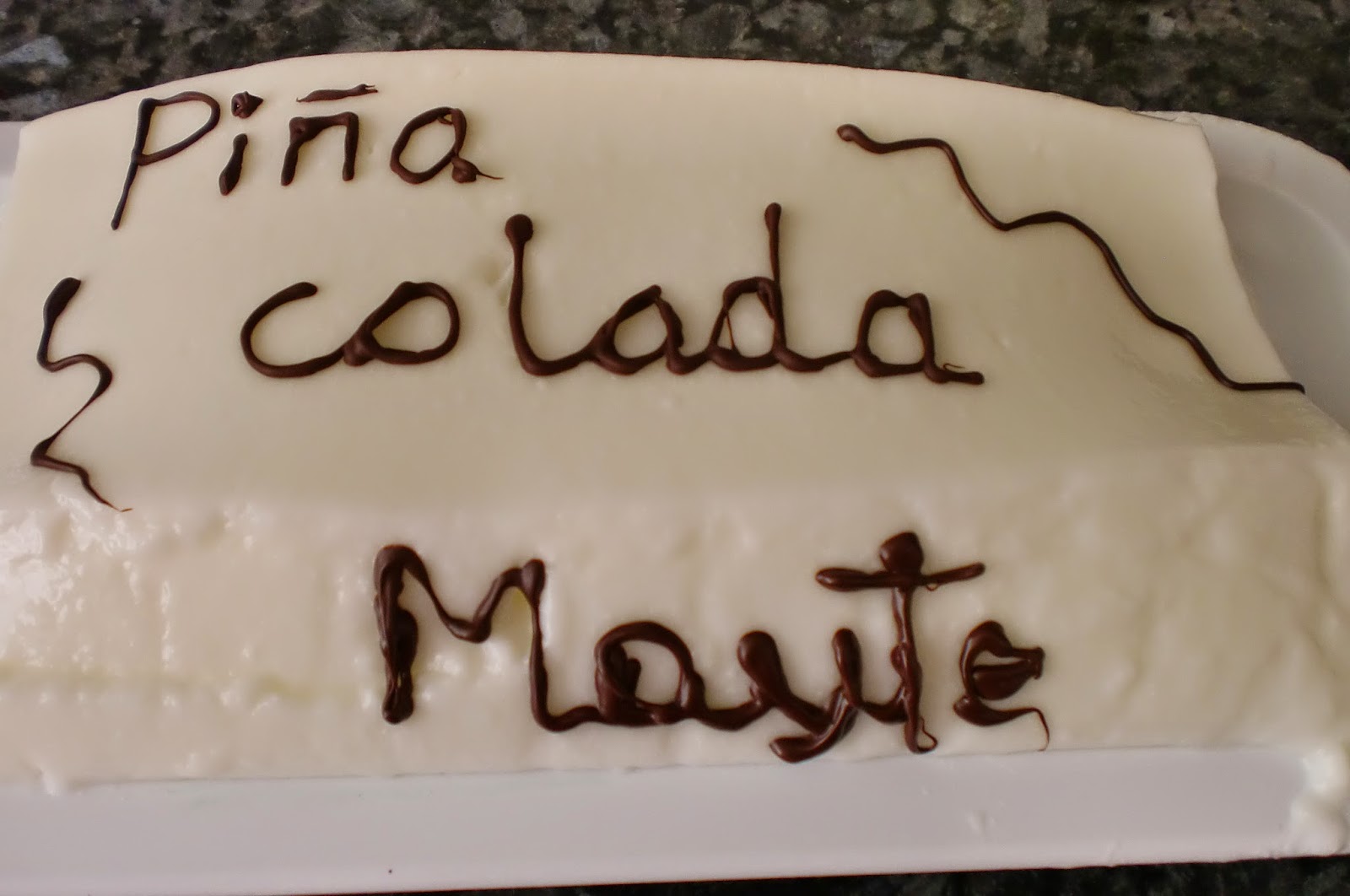 Como sabeis el piña colada es un coctel hecho a base de zumo de piña, coco y ron; esta tarta es sin alcohol jejeje apta para toda la familia.