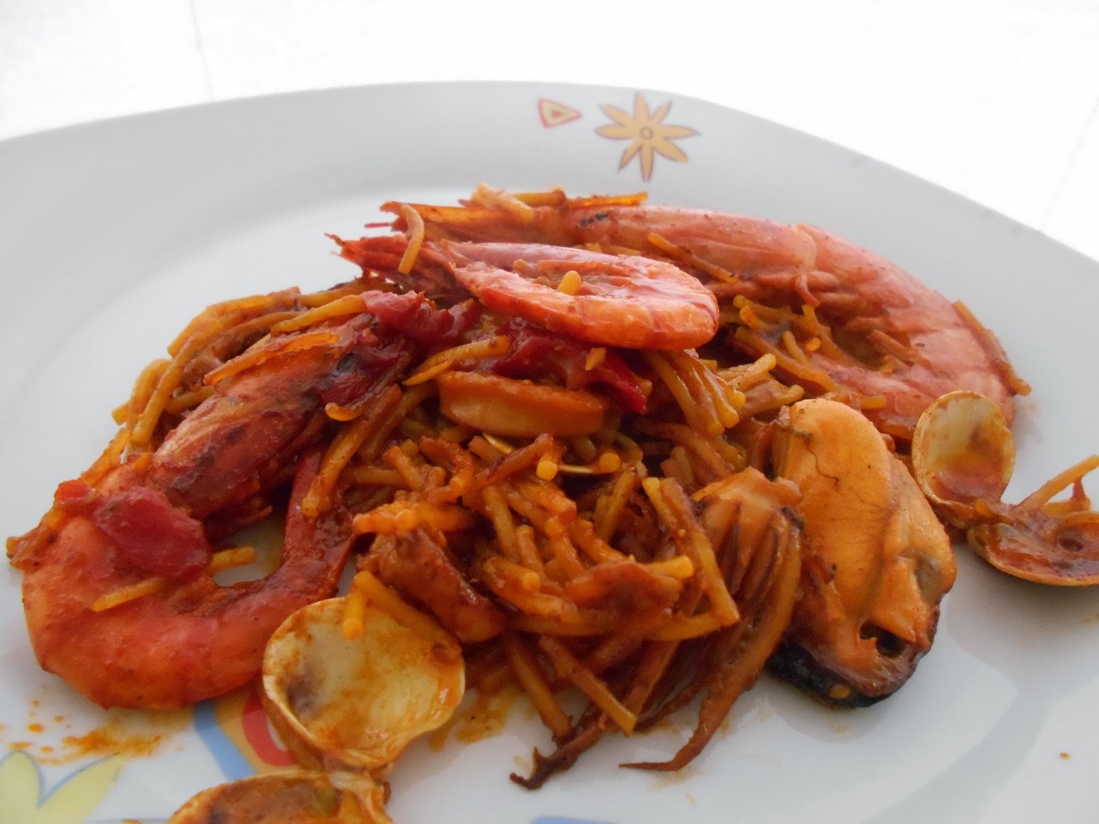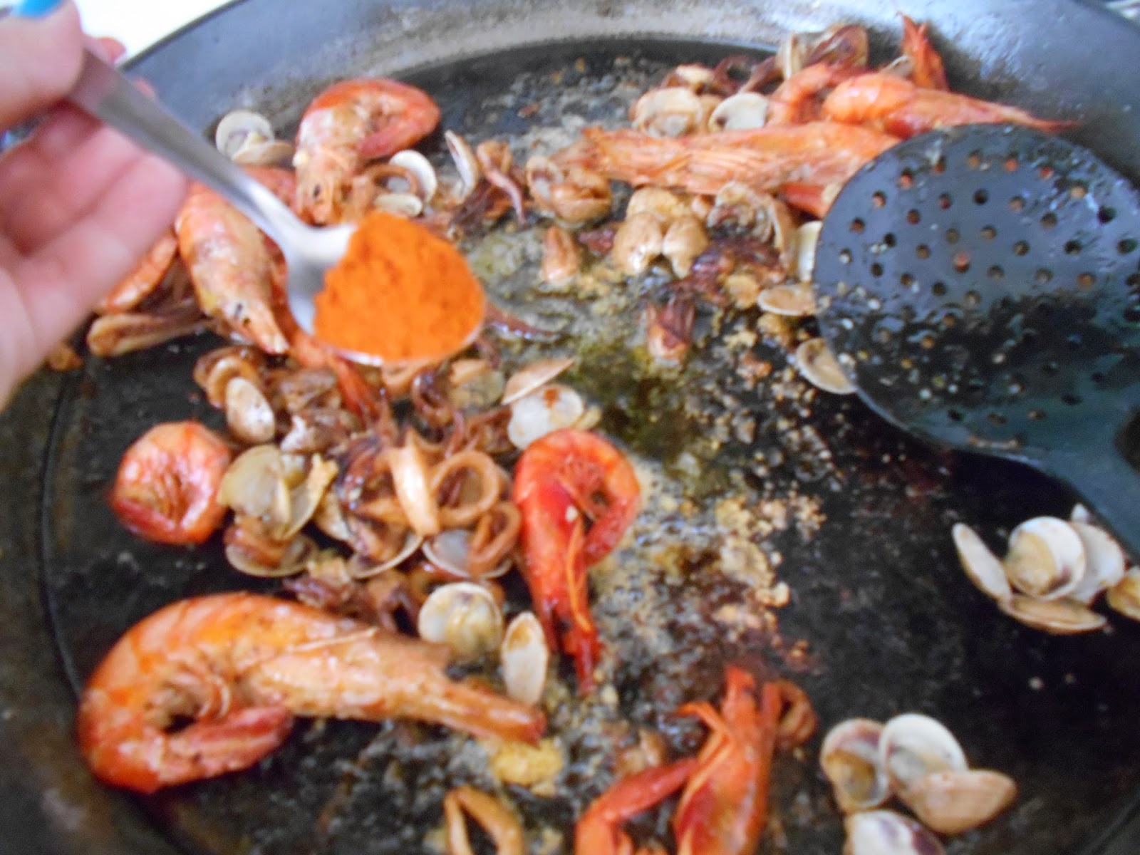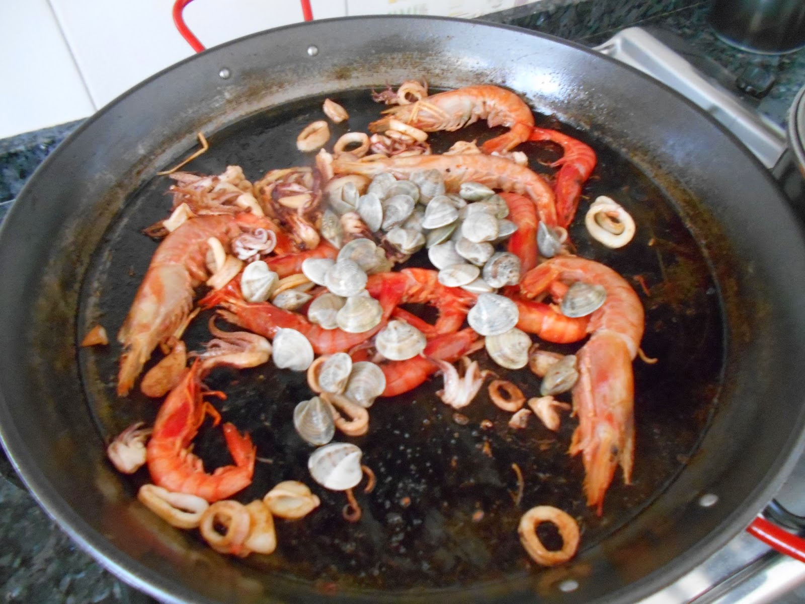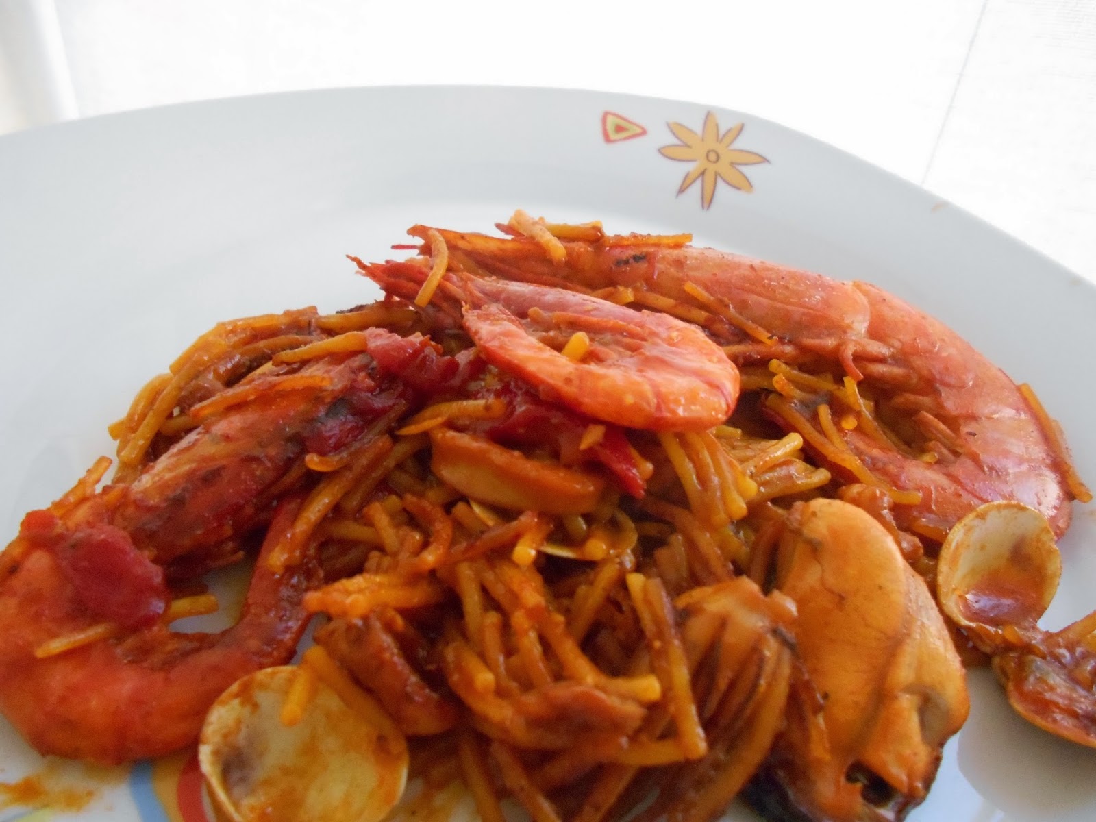 El fideuá de marisco es algo parecido a la paella que todos conocemos, pero en vez de usar arroz, usamos fideos.