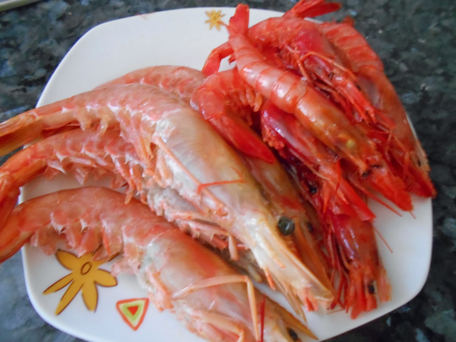 Cuando esten algo dorados echamos los gambones y las gambas rojas y los doramos tambien.