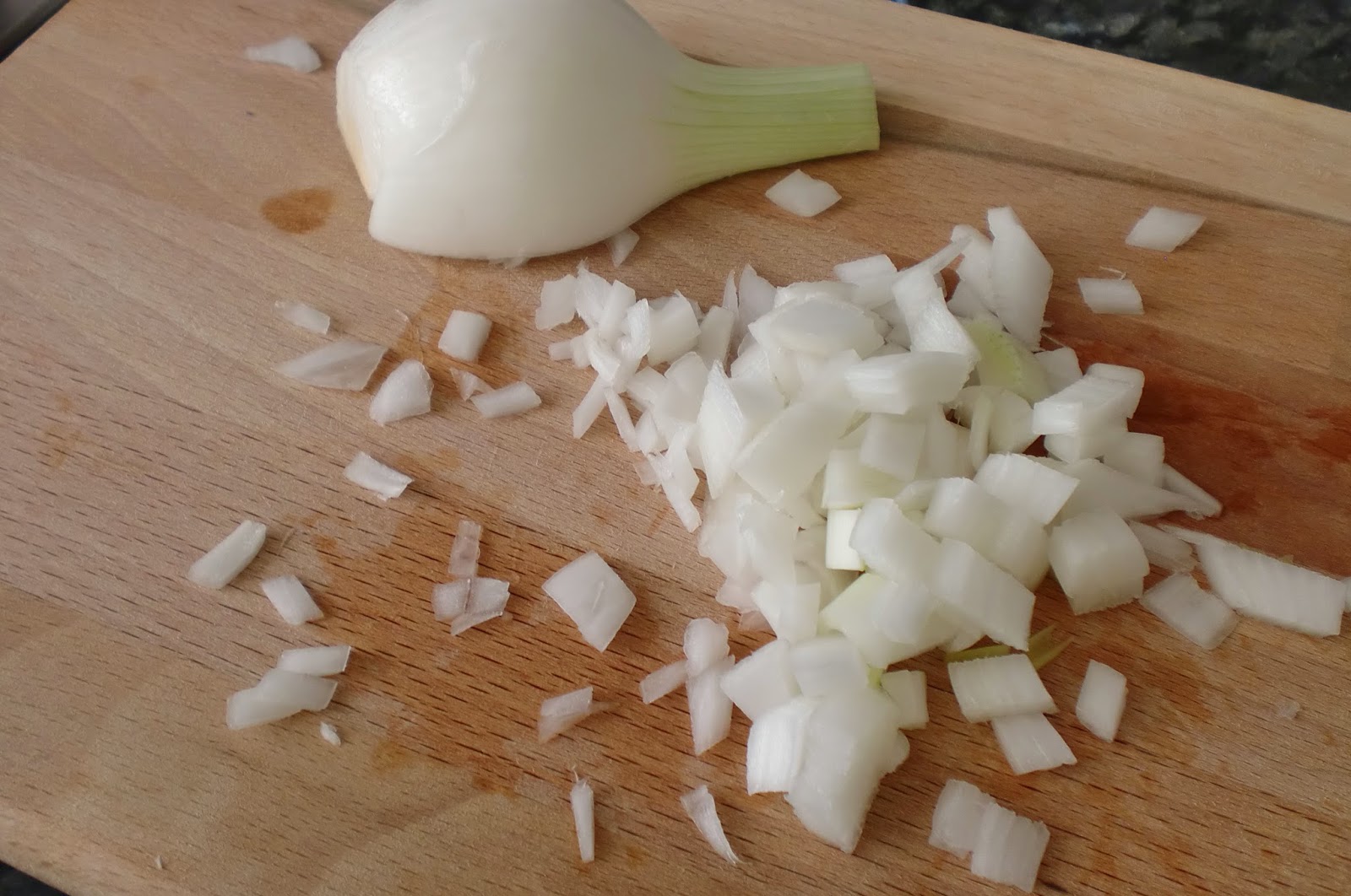 Cortamos la cebolleta y el perejil.