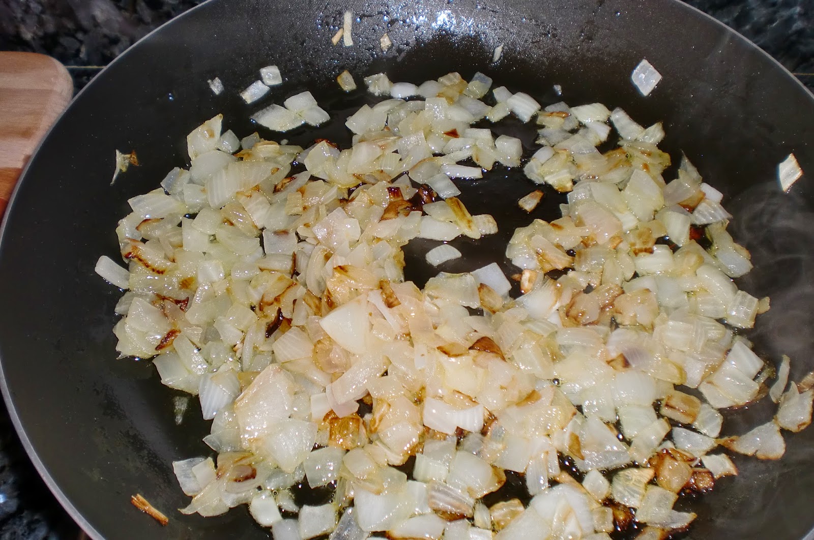 Picamos la cebolla. Calentamos el aceite en una sarten y la  sofreimos.