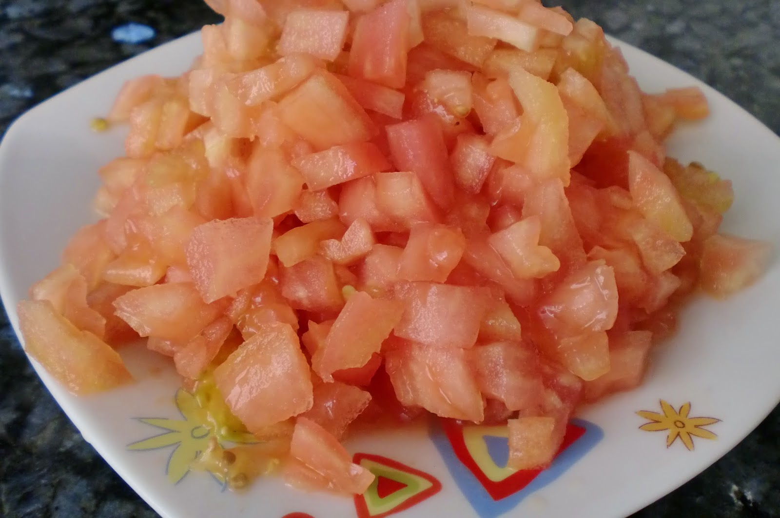 Cortamos los tomates y la cebolleta en trocitos pequeños.