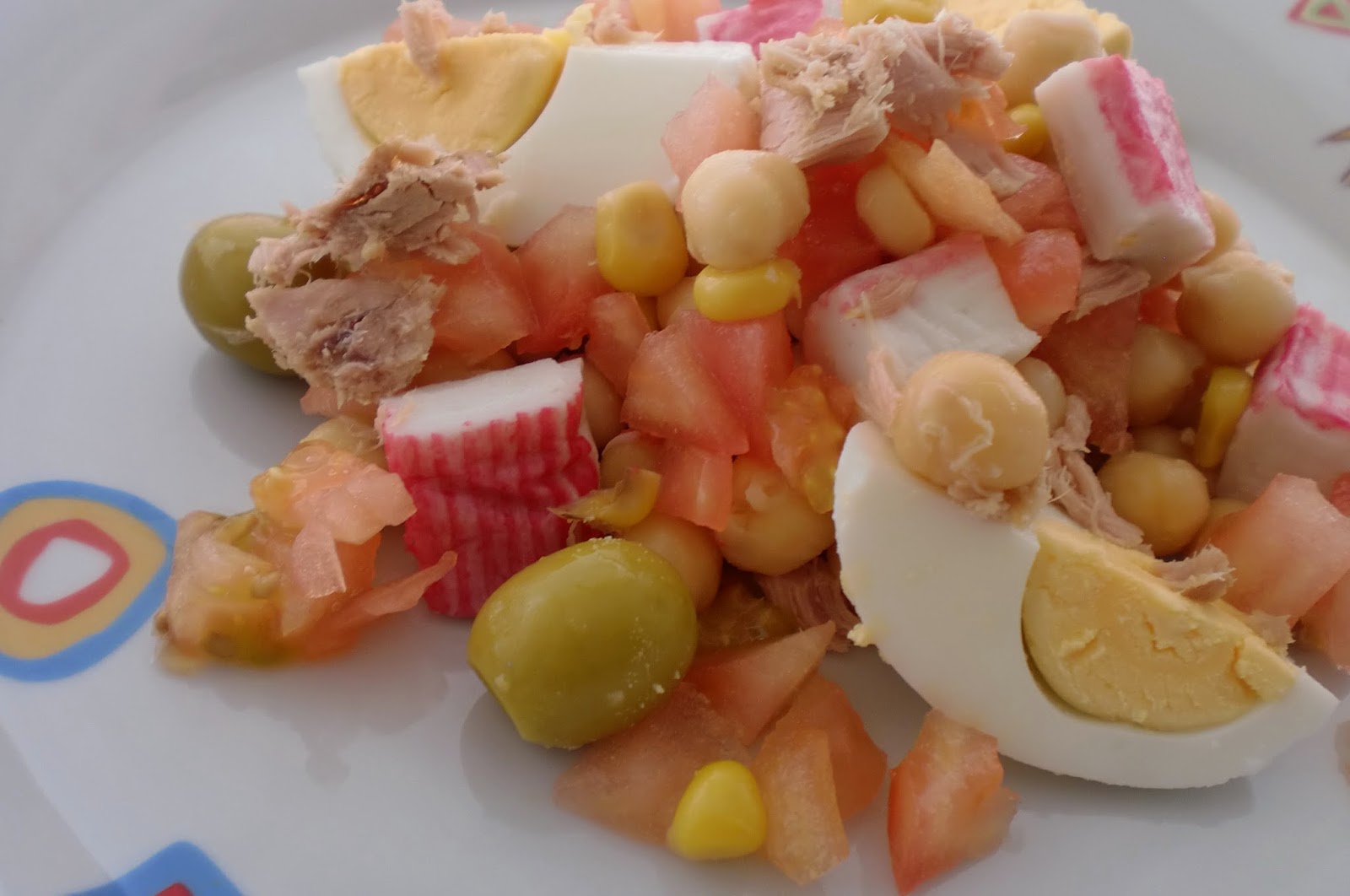 Mezclamos todo en una ensaladera y aliñamos con aceite y sal.