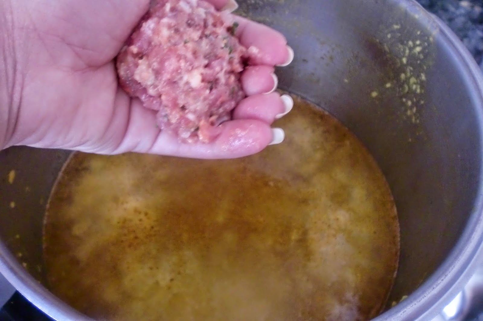hacemos las pelotas como si fuesen albóndigas del tamaño de una pelota de tenis, más o menos, o más grandes eso es a gustos. Yo no las hago muy gordotas porque me gusta que se queden bien cocidas, por eso son mas pequeñas. Las encontrareis grandes como un puño…