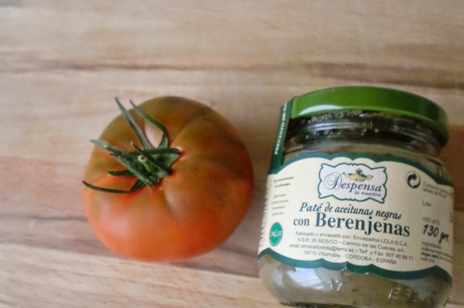 Por eso os dejo este otro canape expres muy rico y sencillo. En esta ocasion con tomate y pate de berenjenas y aceitunas