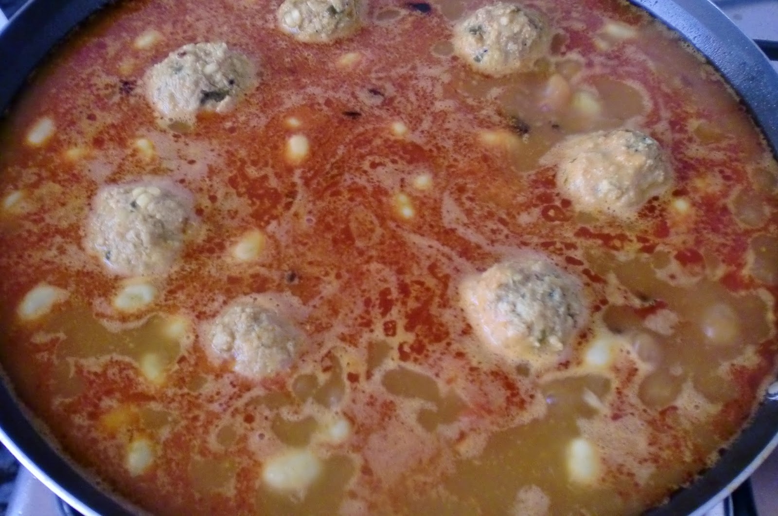 Bueno el otro dia hice caldo con pelotas y tengo por costumbre hacer siempre de más para guardar y tener comida para otro dia jeje pues bien se me ocurrio hacerlas con arroz en la paella y asi sacar de ese taper comida para 4, porque hay que ahorrar y aprovechar todos los restos.