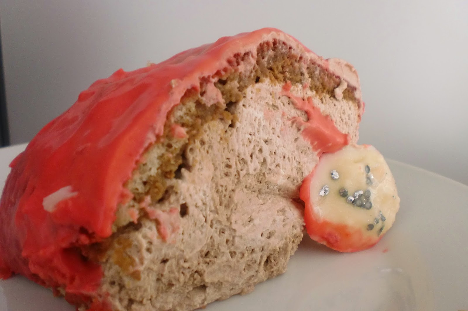 En casa le décimos «Bomba de San Valentin» porque como veis es una tarta alta y con muchisimo relleno que Por cierto jejej esta riquisima.