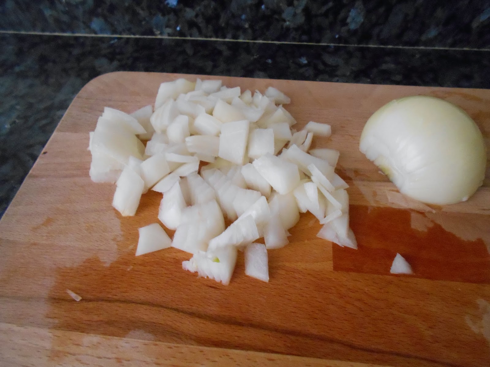 Preparamos el sofrito. Picamos la cebolla y la sofreimos en una sarten