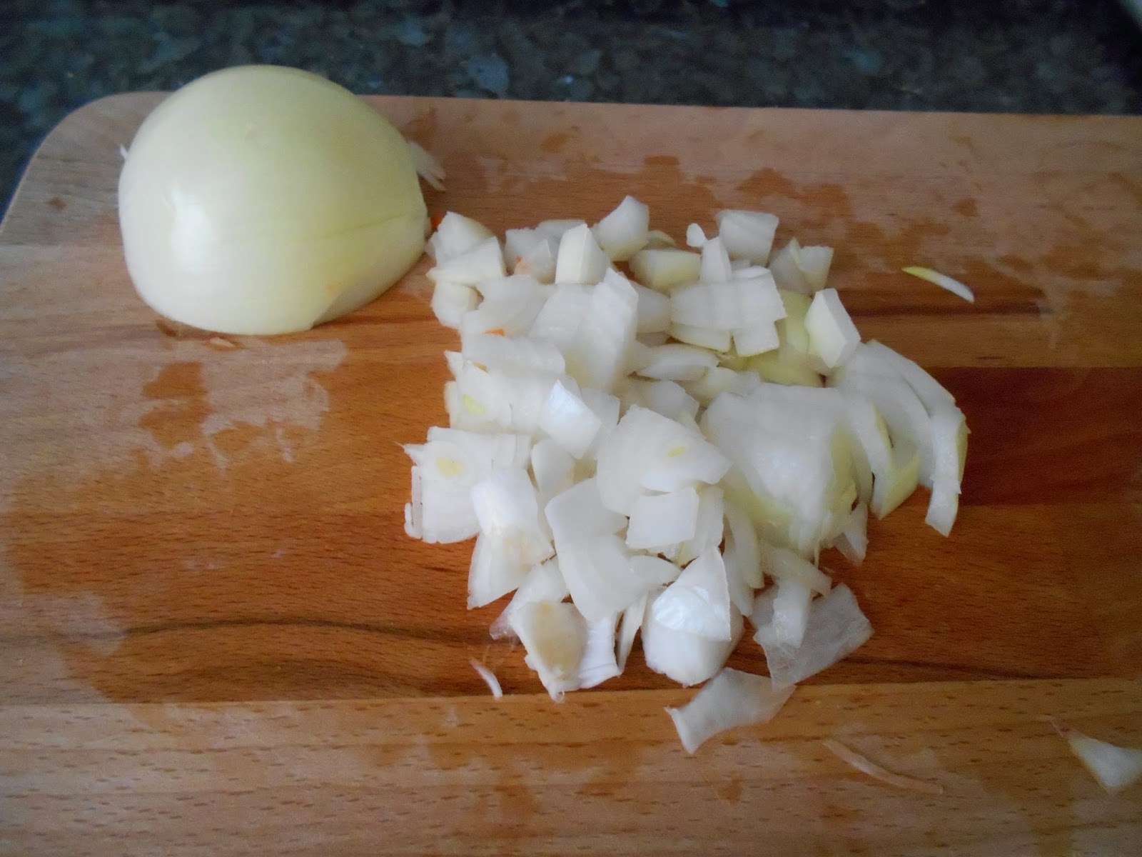 Picamos la cebolla y la zanahoria en trocitos pequeños.