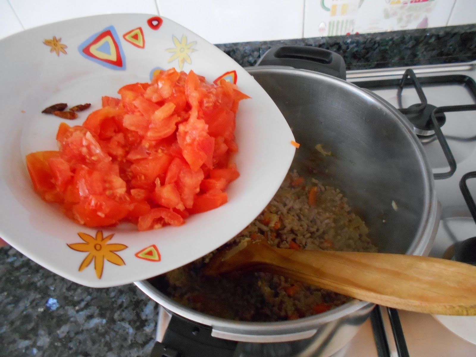 Picamos el tomate y lo añadimos a la olla.