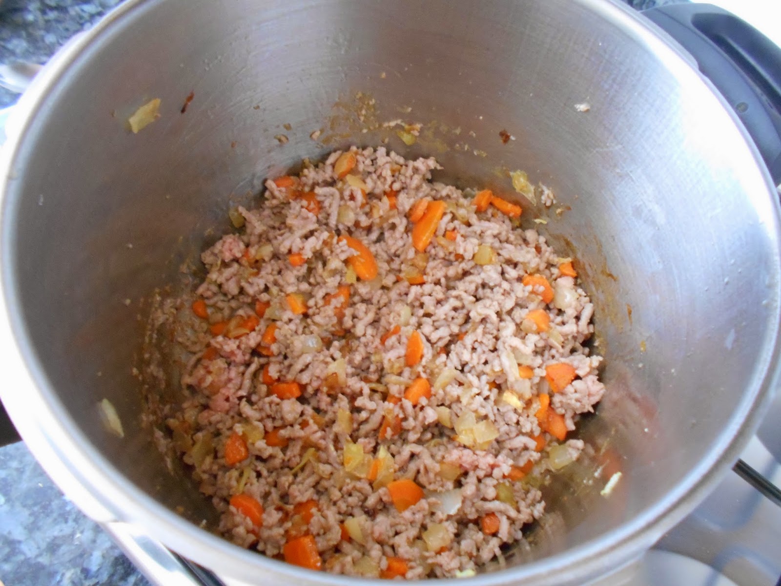 Añadimos la carne picada y sofreimos.