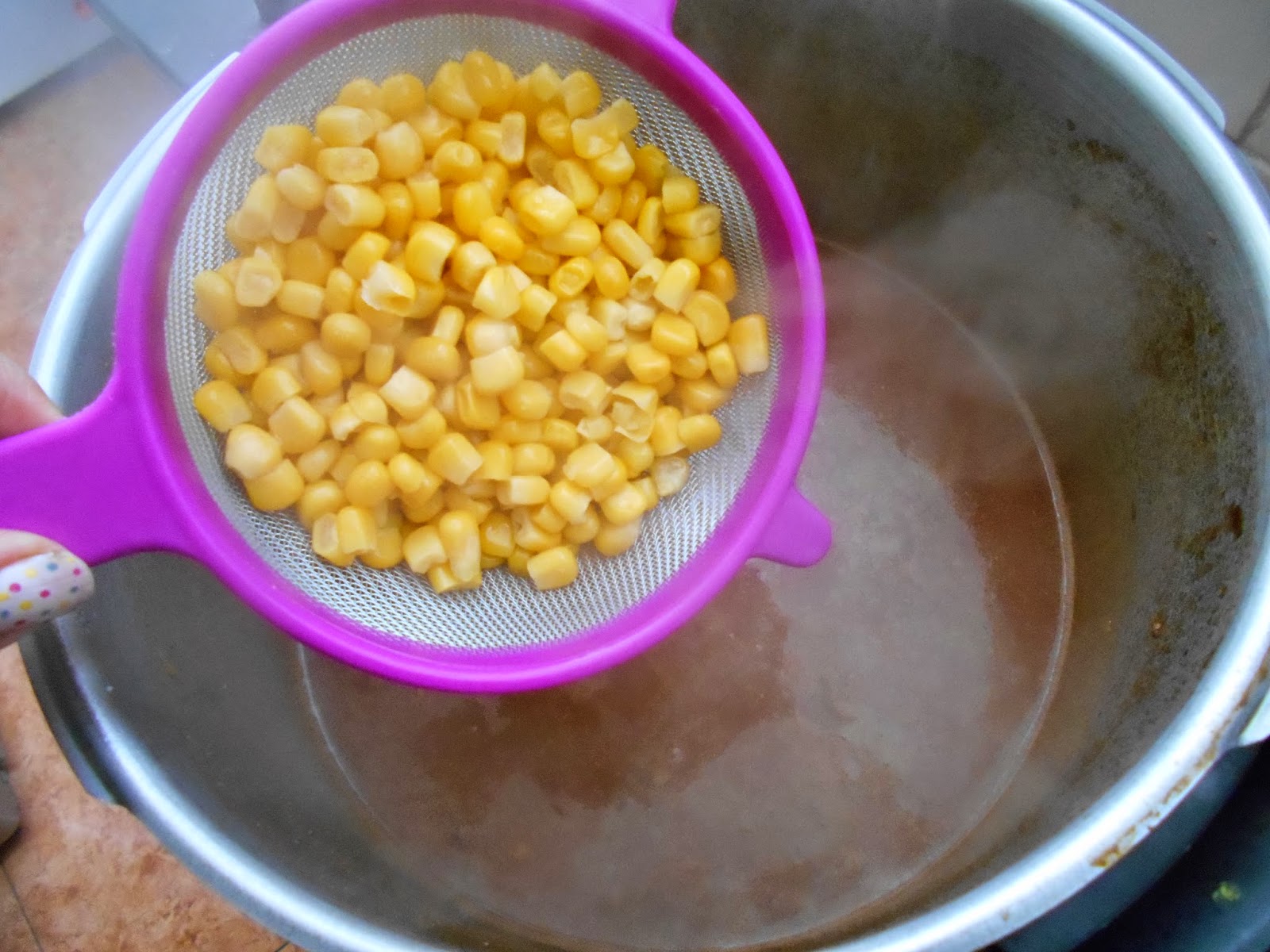 Añadimos el maiz dulce en el momento de servir, mezclamos todo bien… y a comer!!
