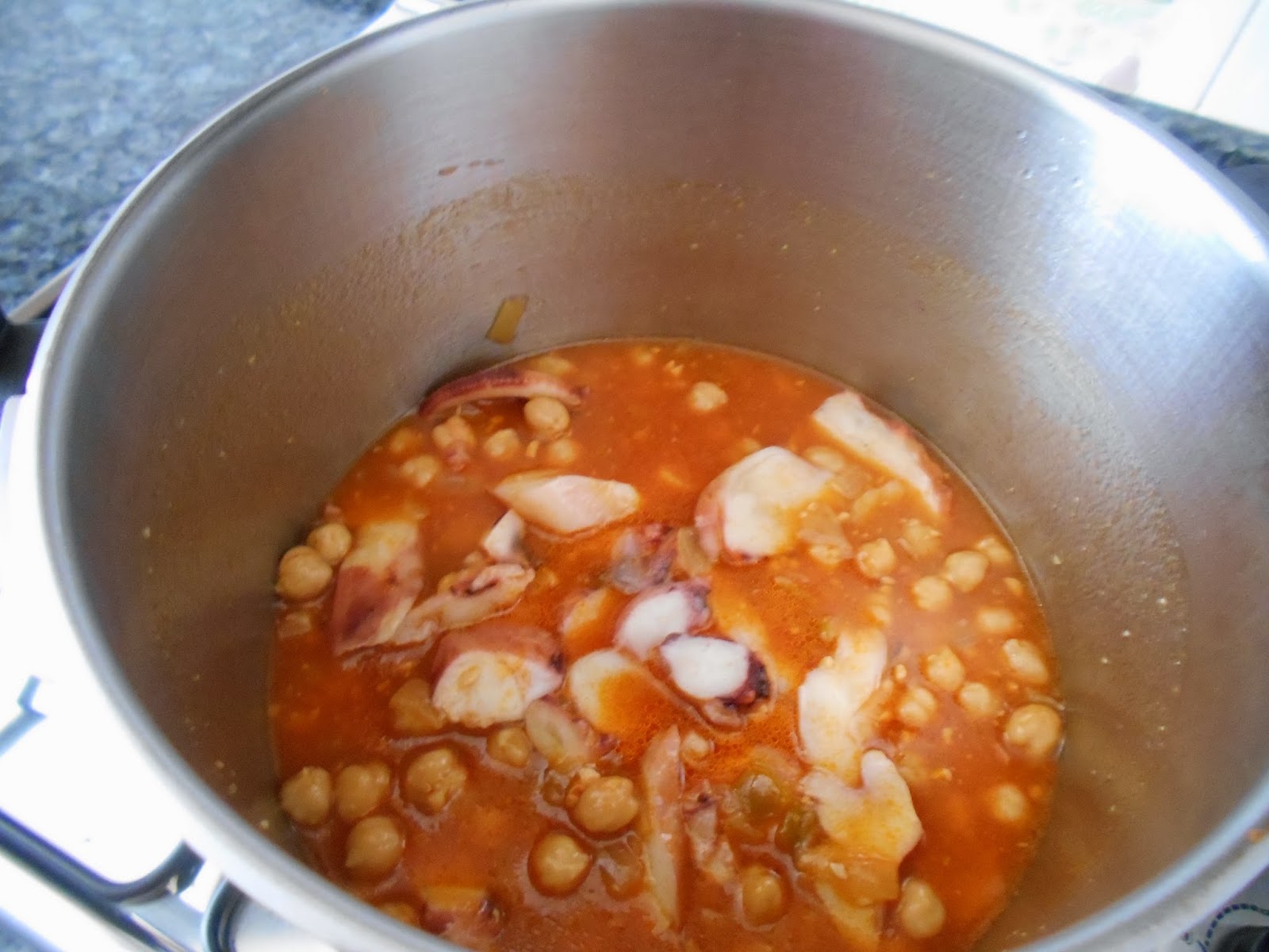 Receta de guiso de garbanzos con pulpo, un plato  típico en la Marina Baixa (Alicante) sencillo y sabroso.