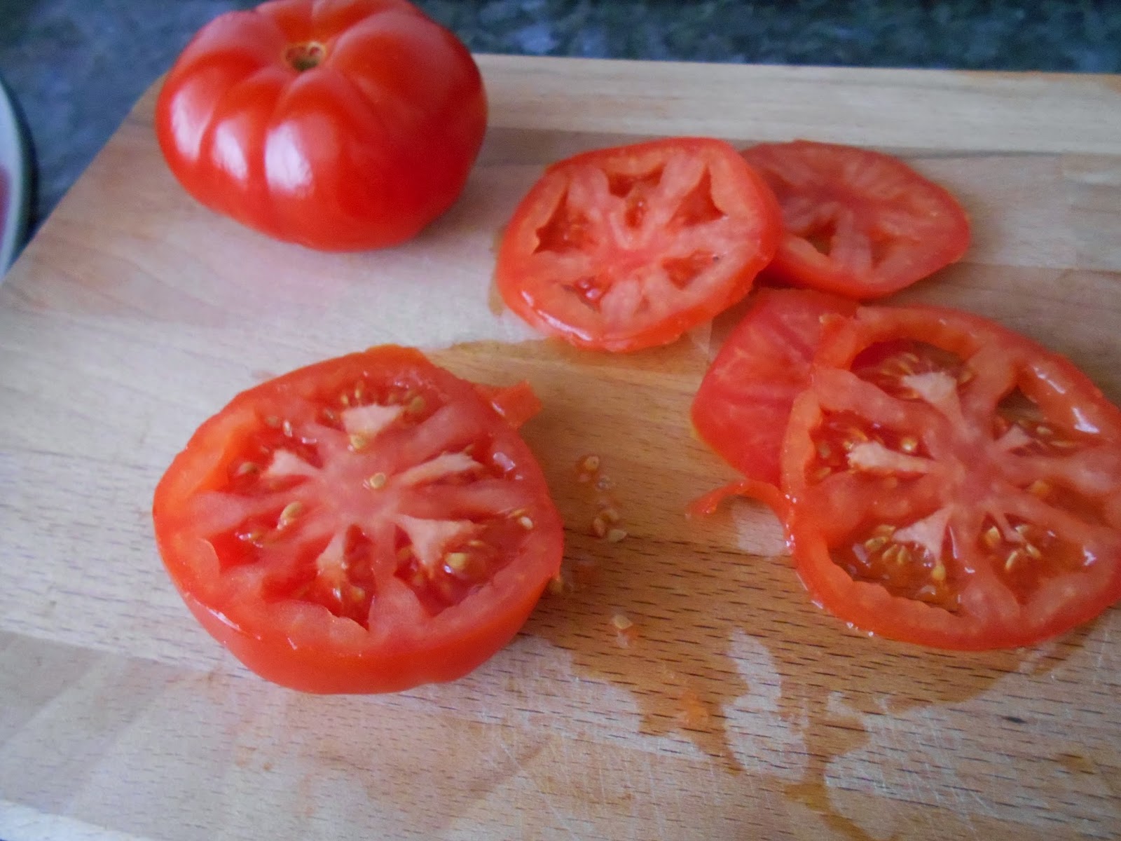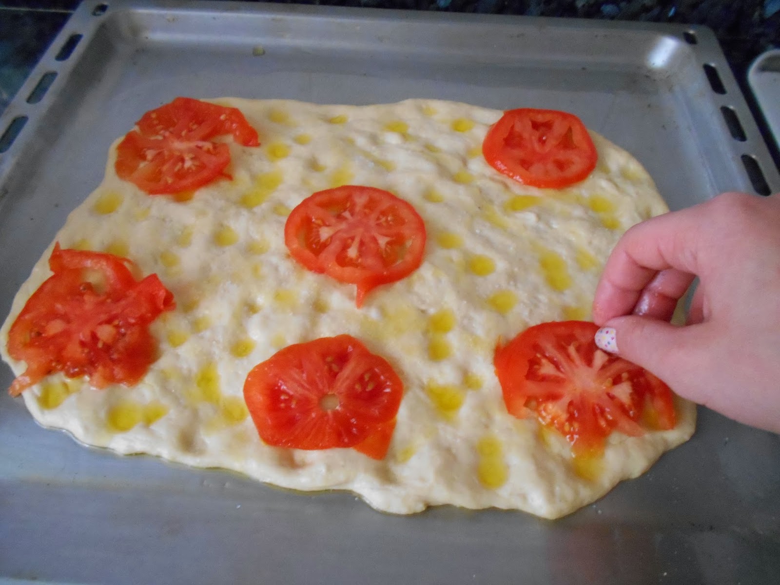 Cortamos el tomate en rodajas finas y las disponemos sobre la coca.