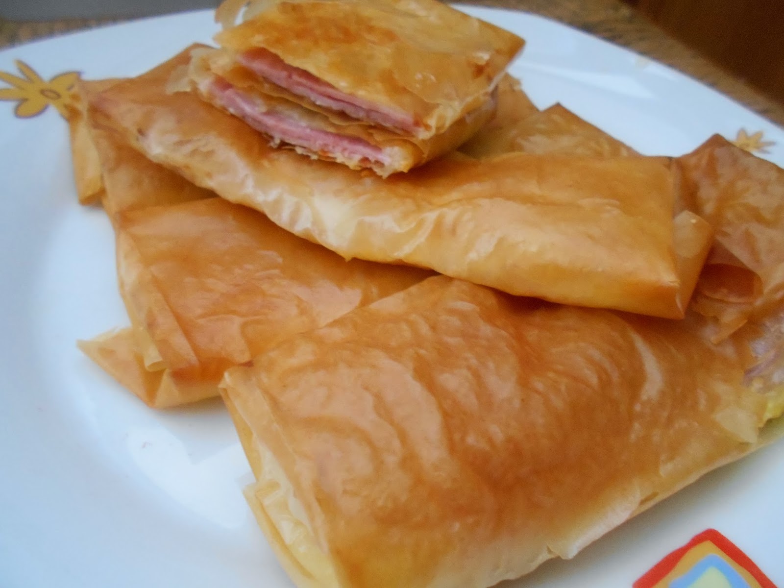 De esos dias dias que necesitas hacer algo «para quedar bien con…» y no tienes tiempo he aqui una idea facil y rapida, unos rollitos de jamon york y queso con pasta filo.