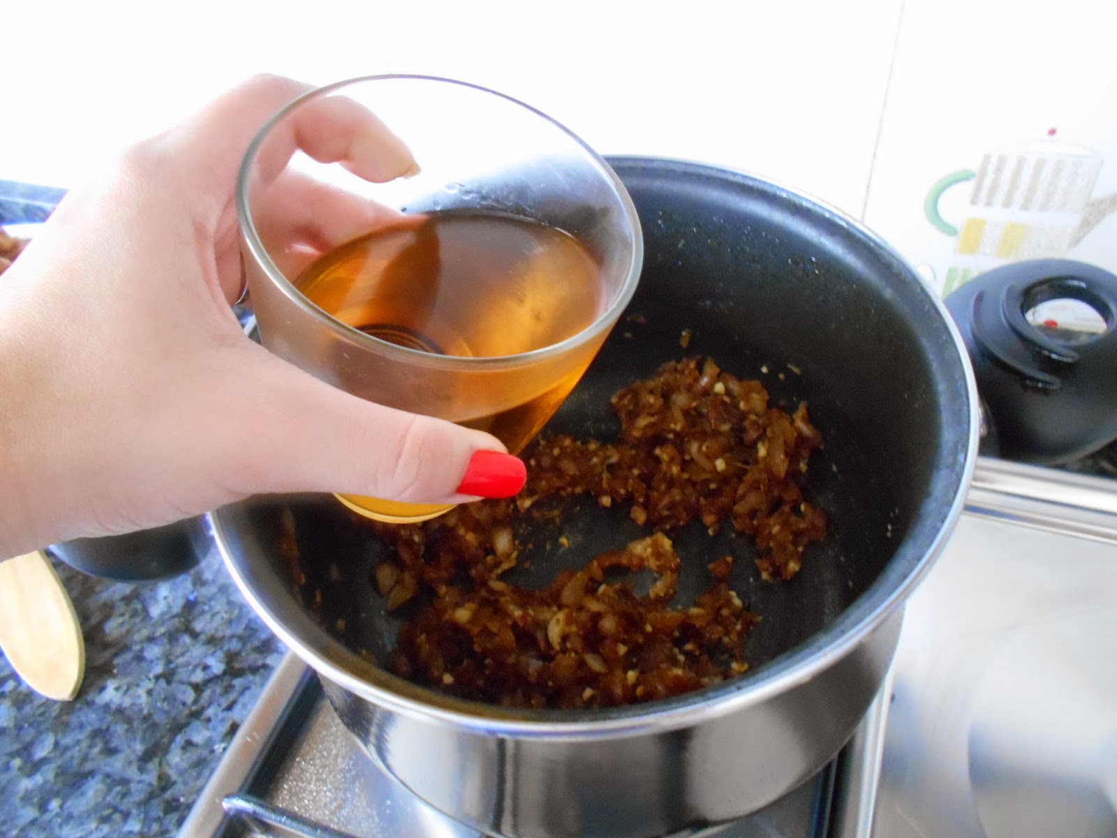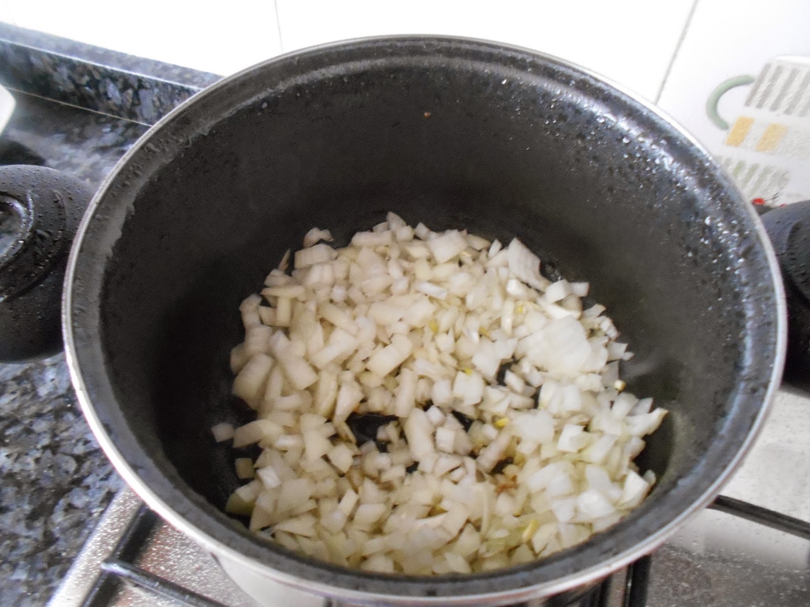 En esa misma olla doramos la cebolla y los ajos.