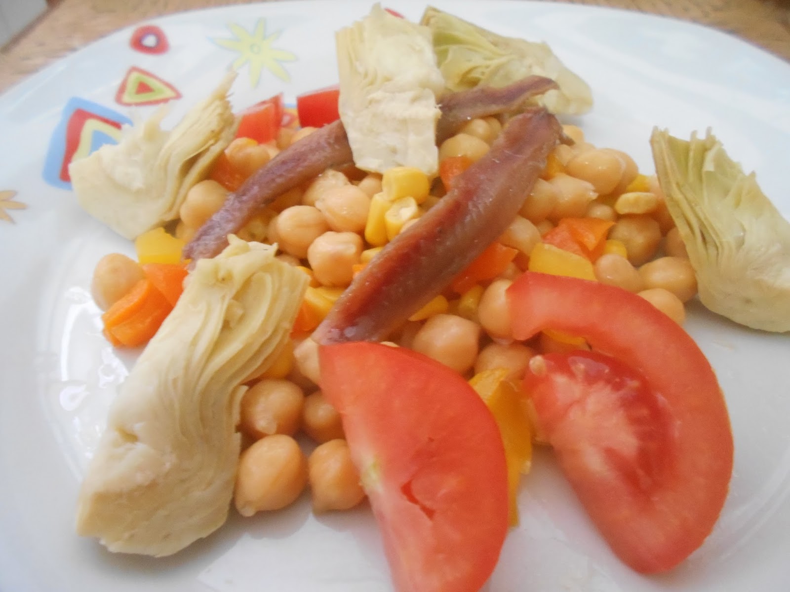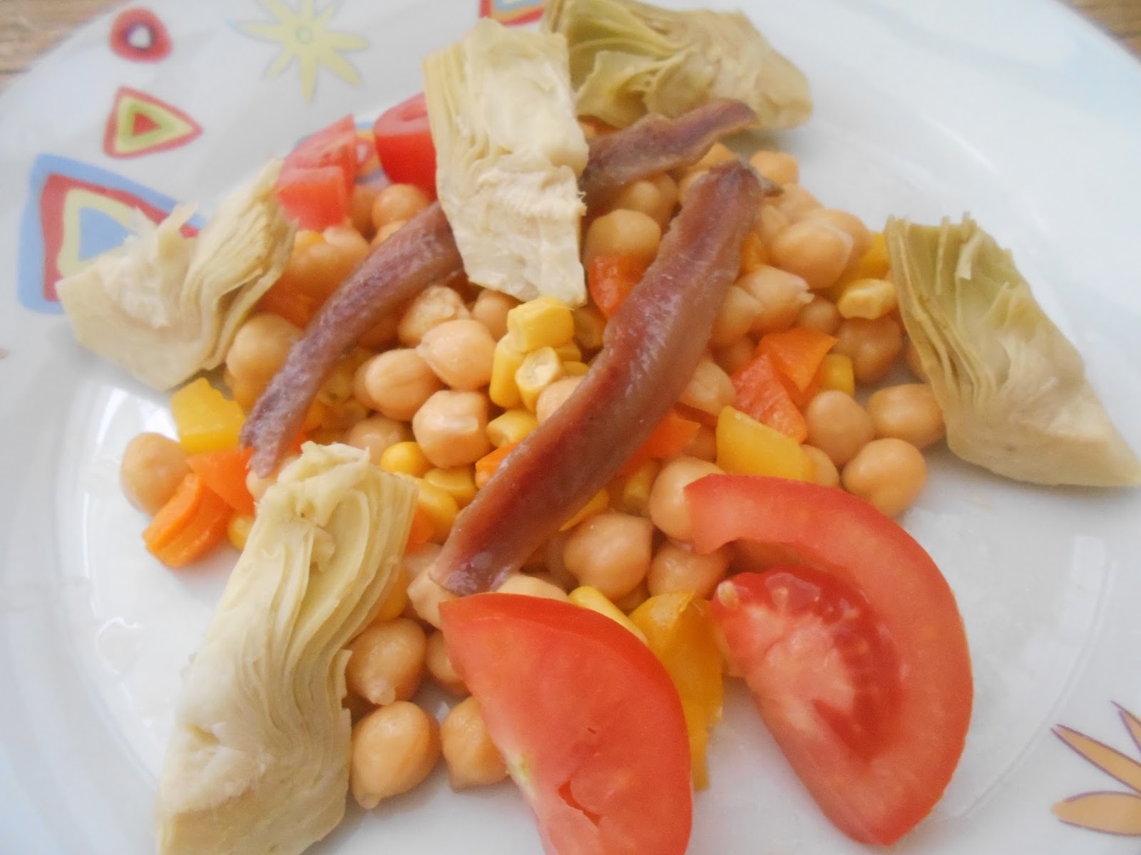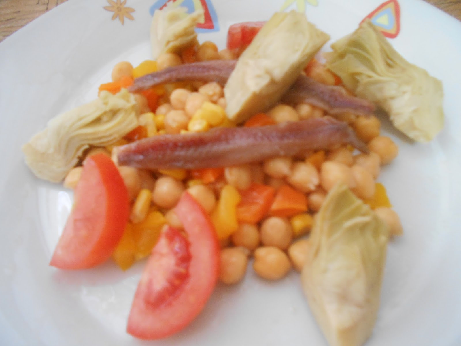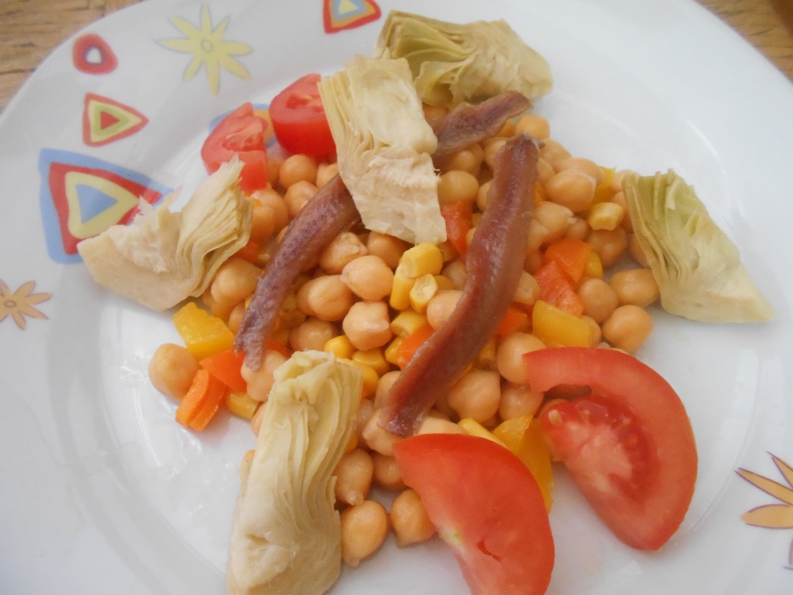 ENSALADA DE GARBANZOS CON ALCACHOFAS Y ANCHOAS