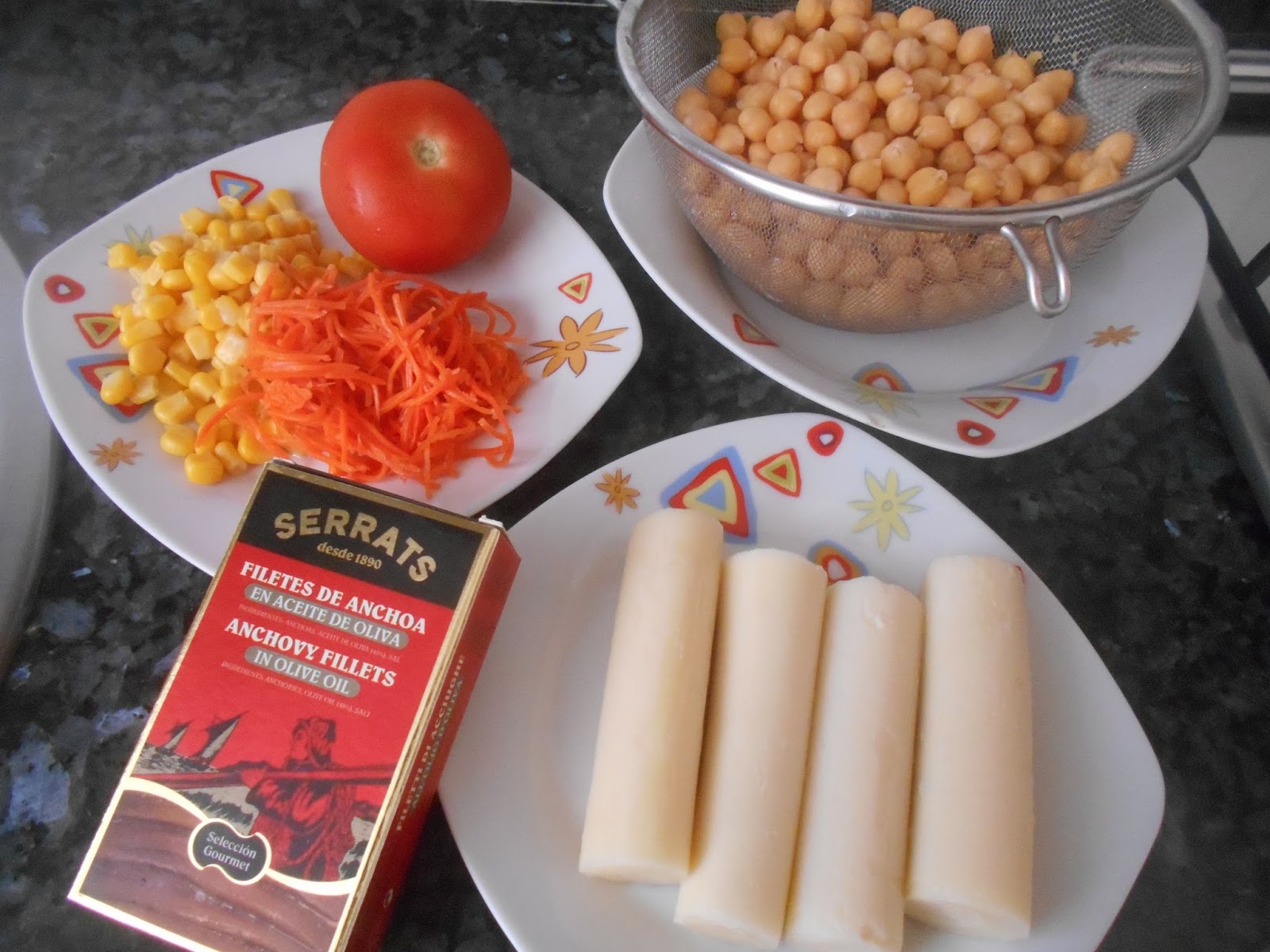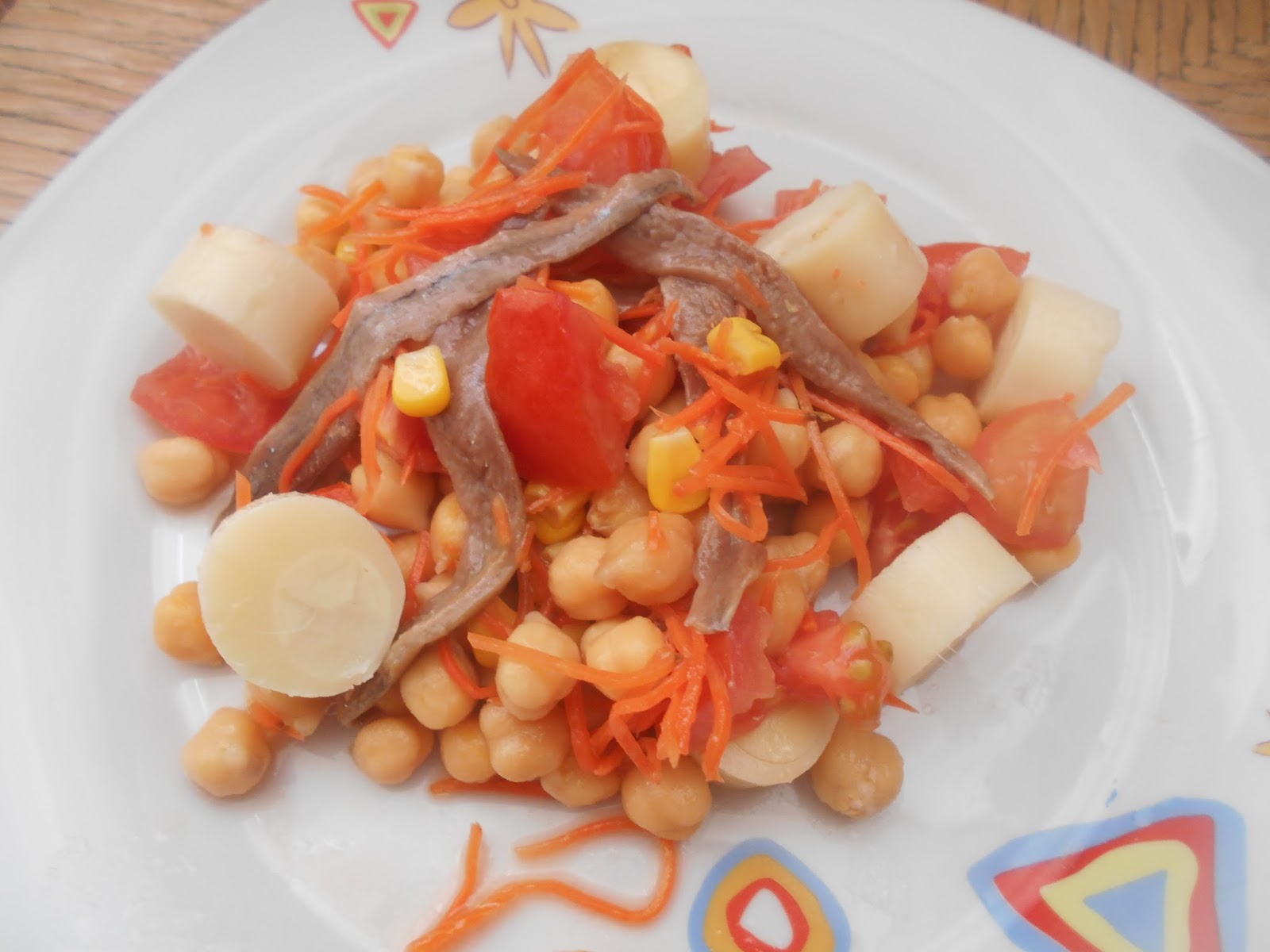 ENSALADA DE GARBANZOS Y ANCHOAS CON PALMITOS