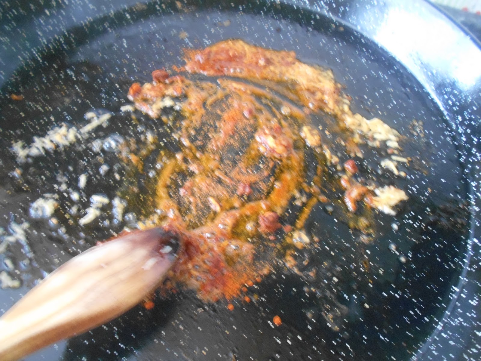 Añadimos un poco de pimentón dulce y rehogamos ligeramente para que no se queme.